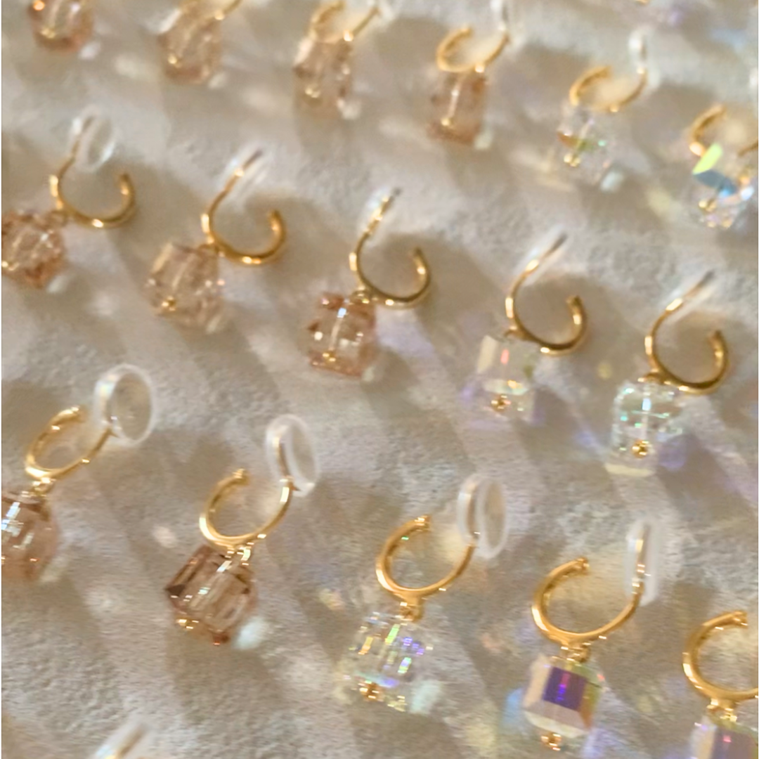 【再入荷|2/17(火)〜】クリスタルキューブイヤリング【ノンホール(フラットタイプ)】
