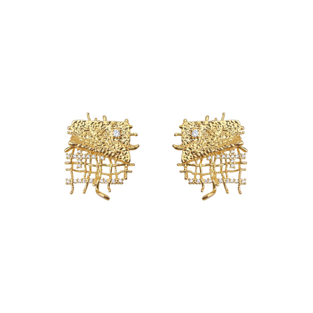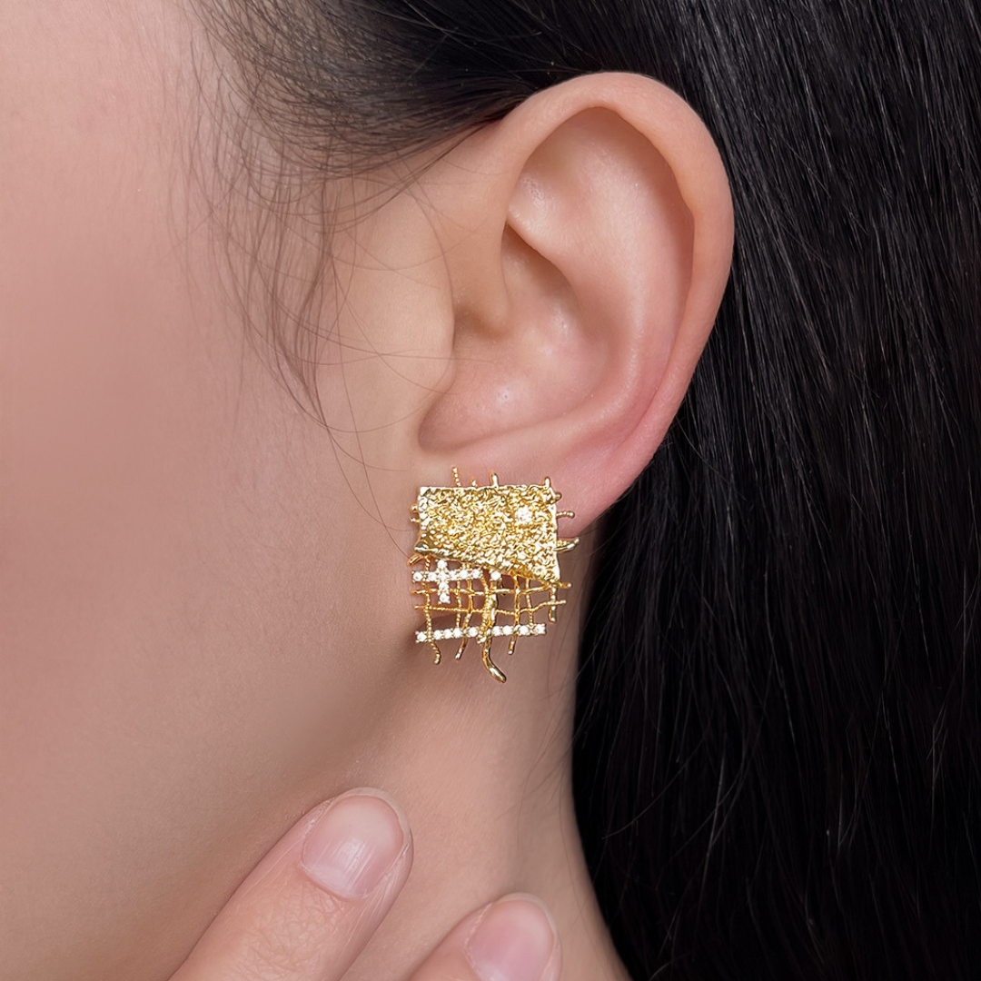 まるで小さなアートピースのような、独創的なデザインのイヤリング。