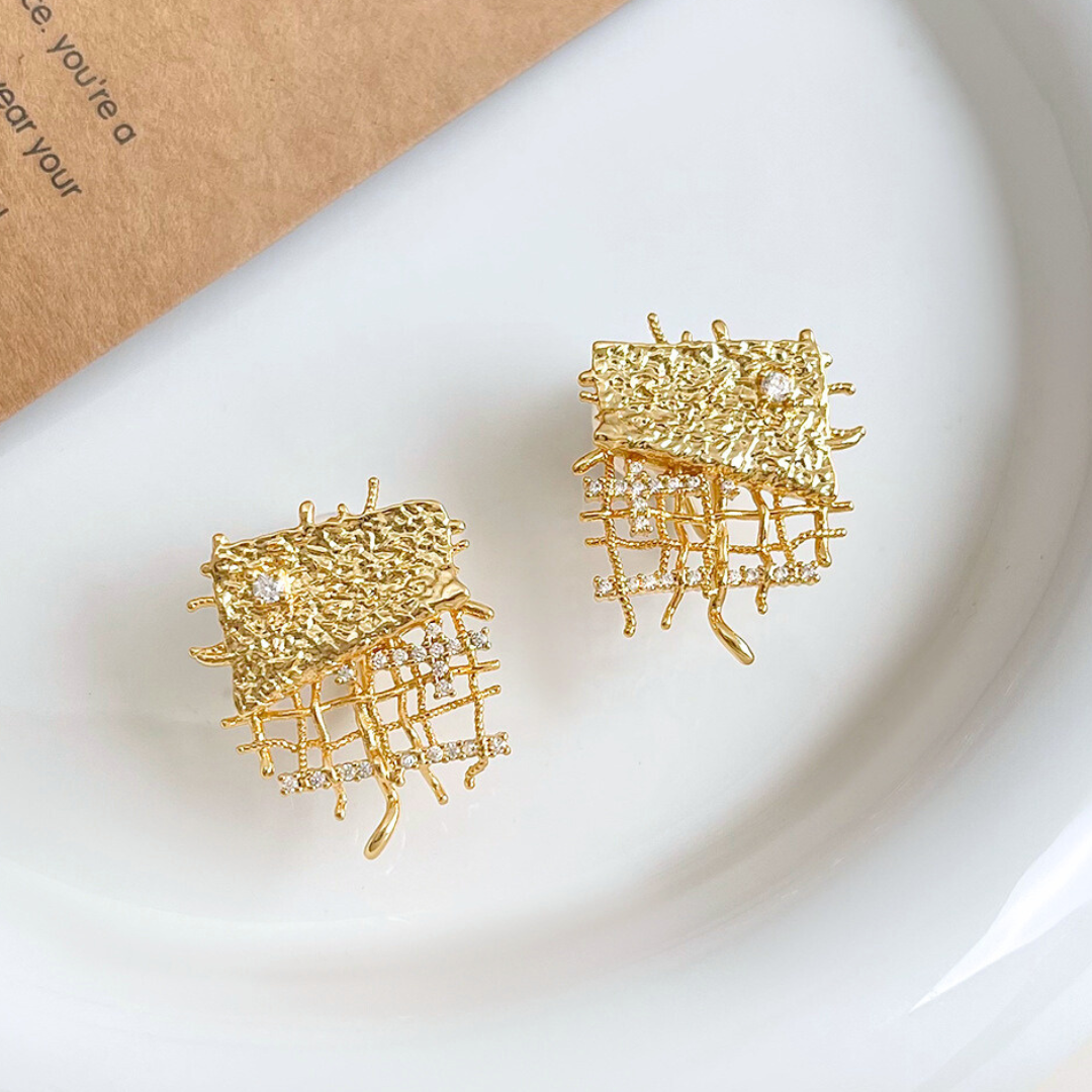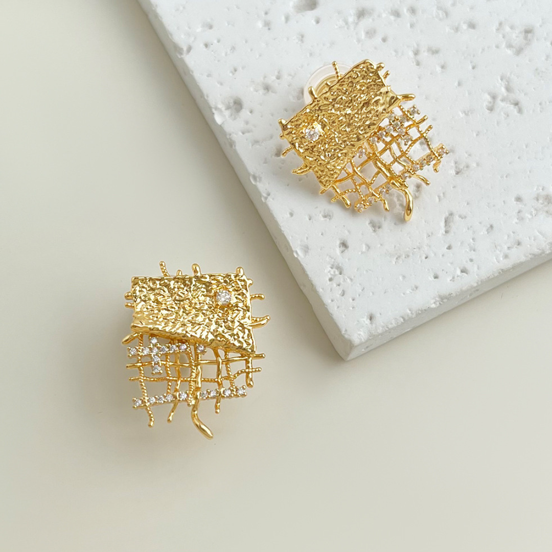 職人が手掛けたような温かみのあるテクスチャープレートと、繊細なメッシュパーツを大胆に組み合わせました。 プレートとメッシュにちりばめられたビジューが、動くたびに上品な輝きを放ち、デザインに奥行きを与えます。 アシンメトリーで立体的なフォルムが、横顔にモードで洗練された印象をプラス。