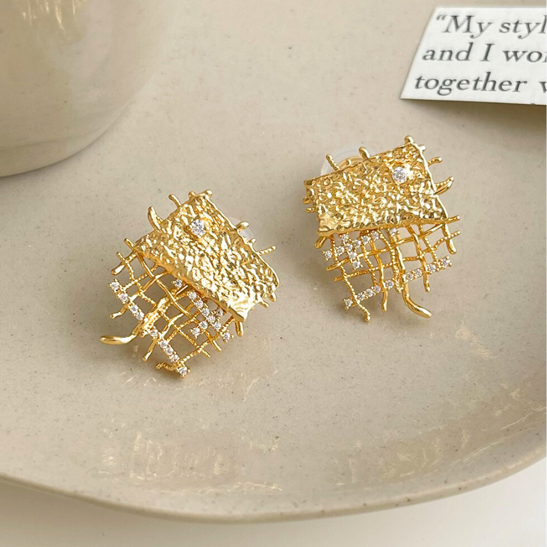 クラフトテクスチャー&メッシュイヤリング【ノンホール(スプリングタイプ)】