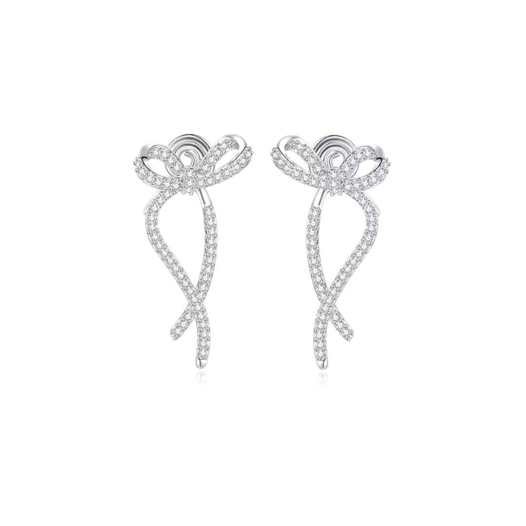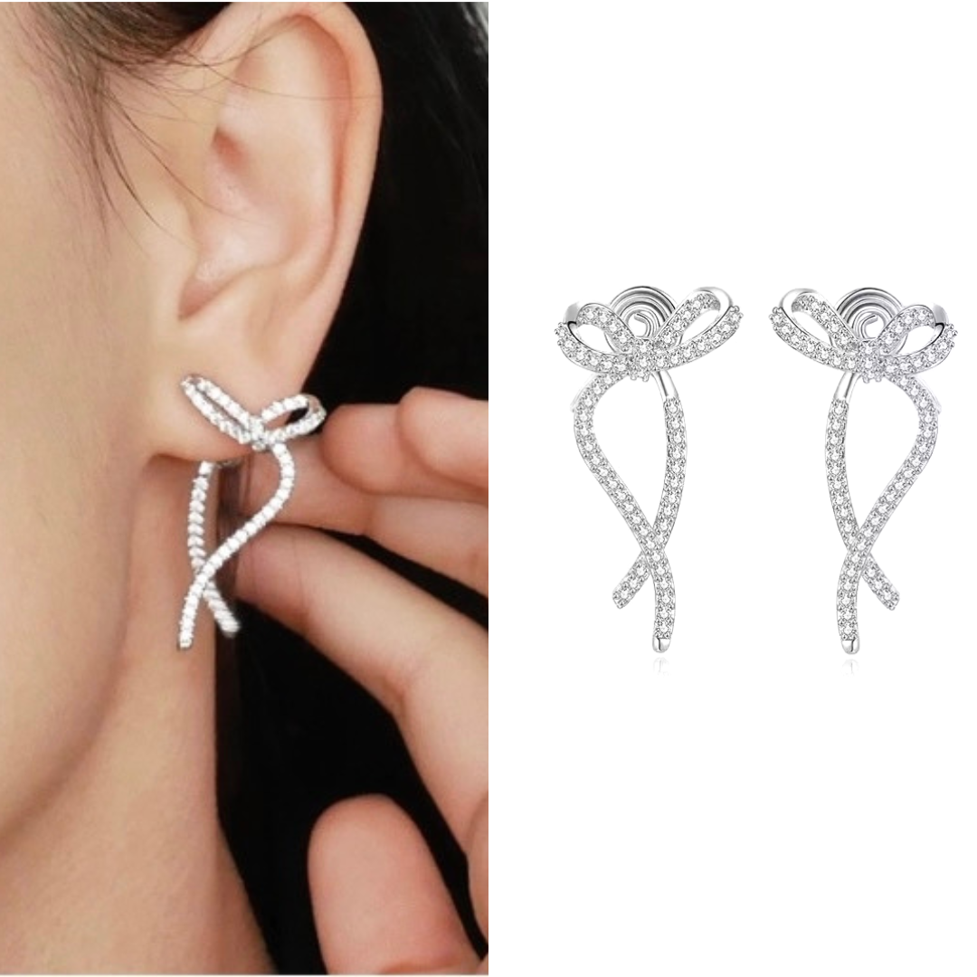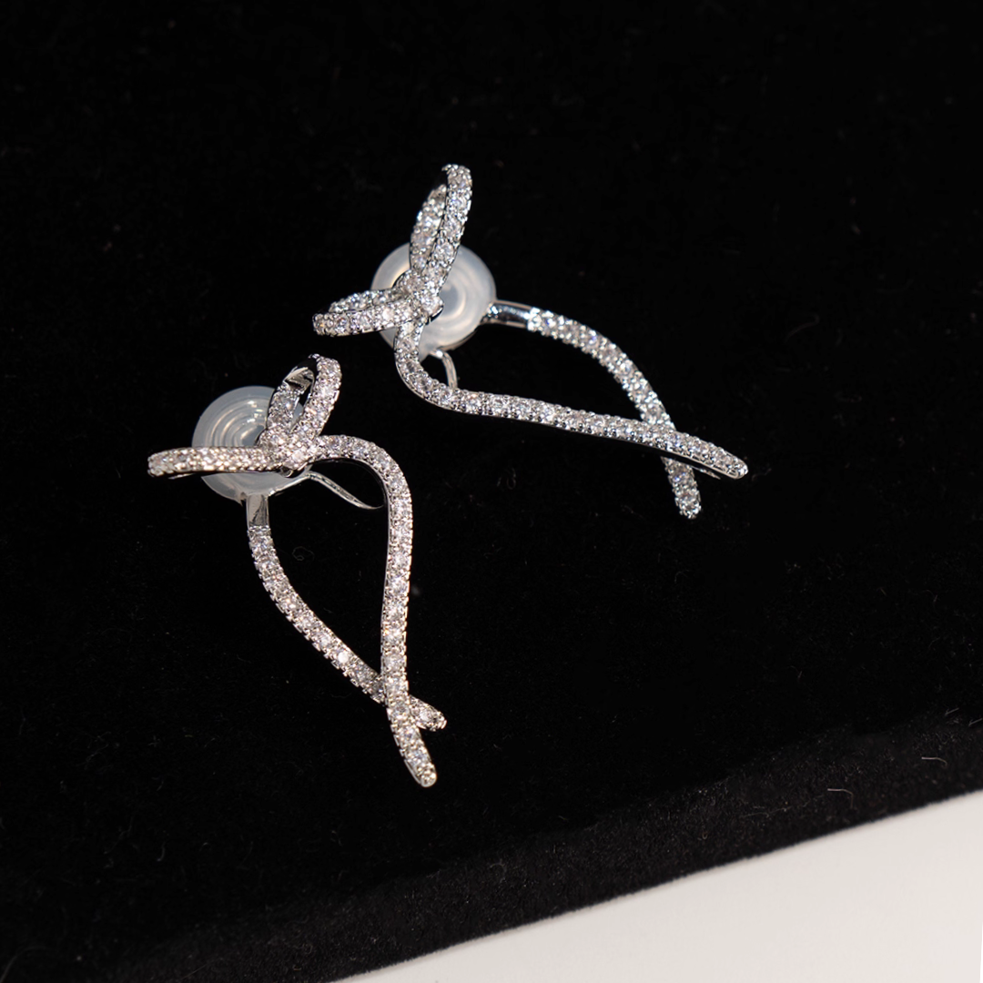 上品にきらめくラインが耳元で美しくカーブを描く、リボンモチーフのイヤリングです。