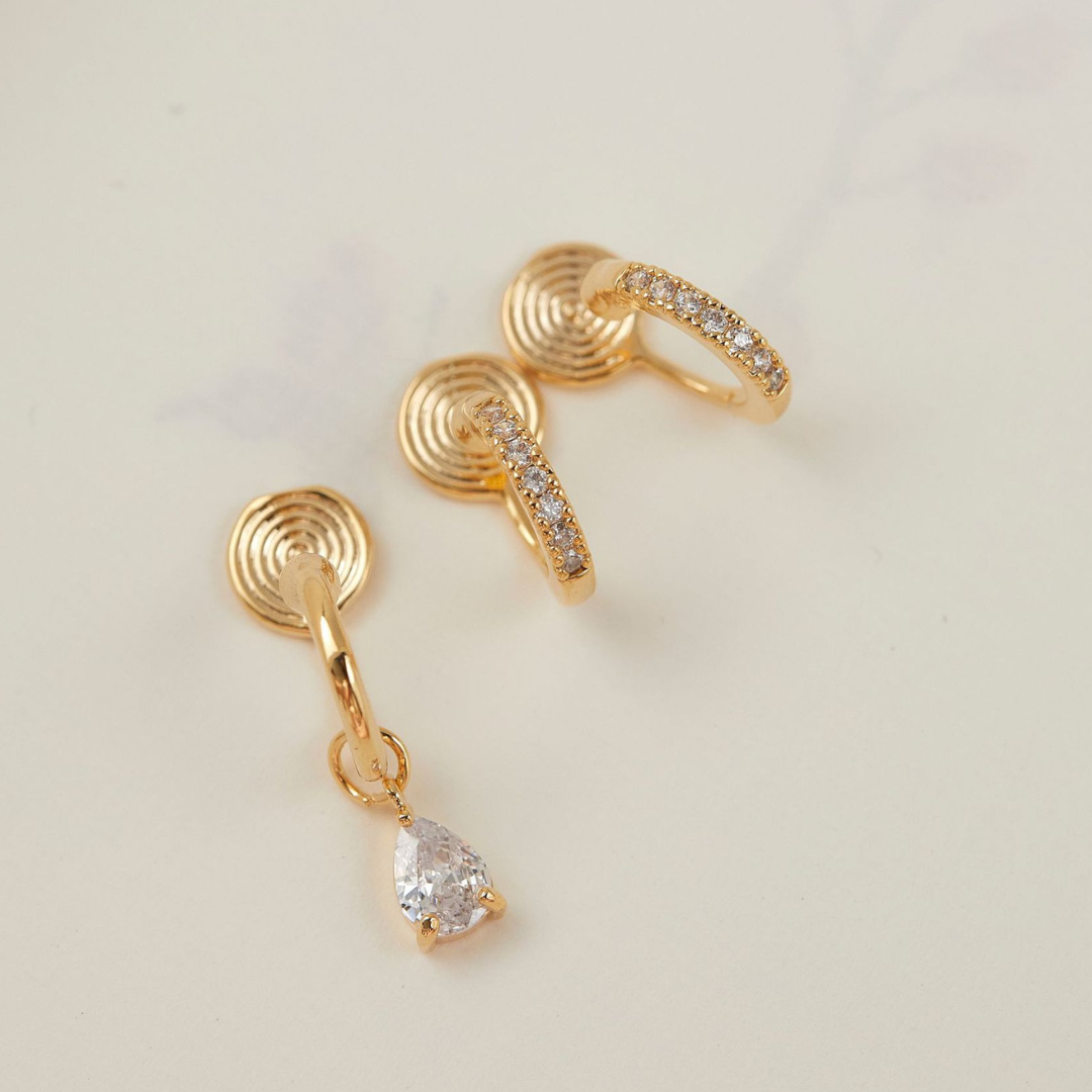 華やかな輝きを放つ、3点セットのイヤークリップ。