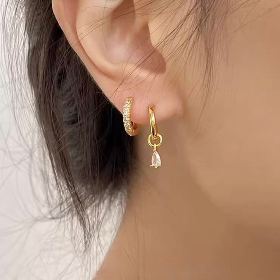 2つのフープは繊細なキュービックジルコニアが贅沢に敷き詰められ、耳元で繊細に光を反射します。