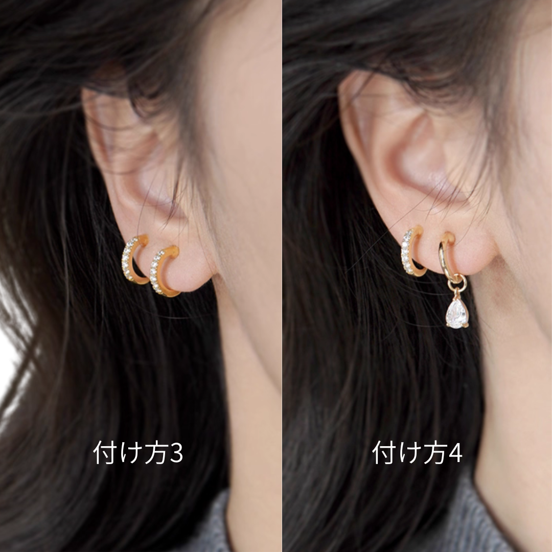 【予約販売|10/30(木)〜発送】ドロップ&フープ 3set イヤリング【ノンホール(フラットタイプ)】