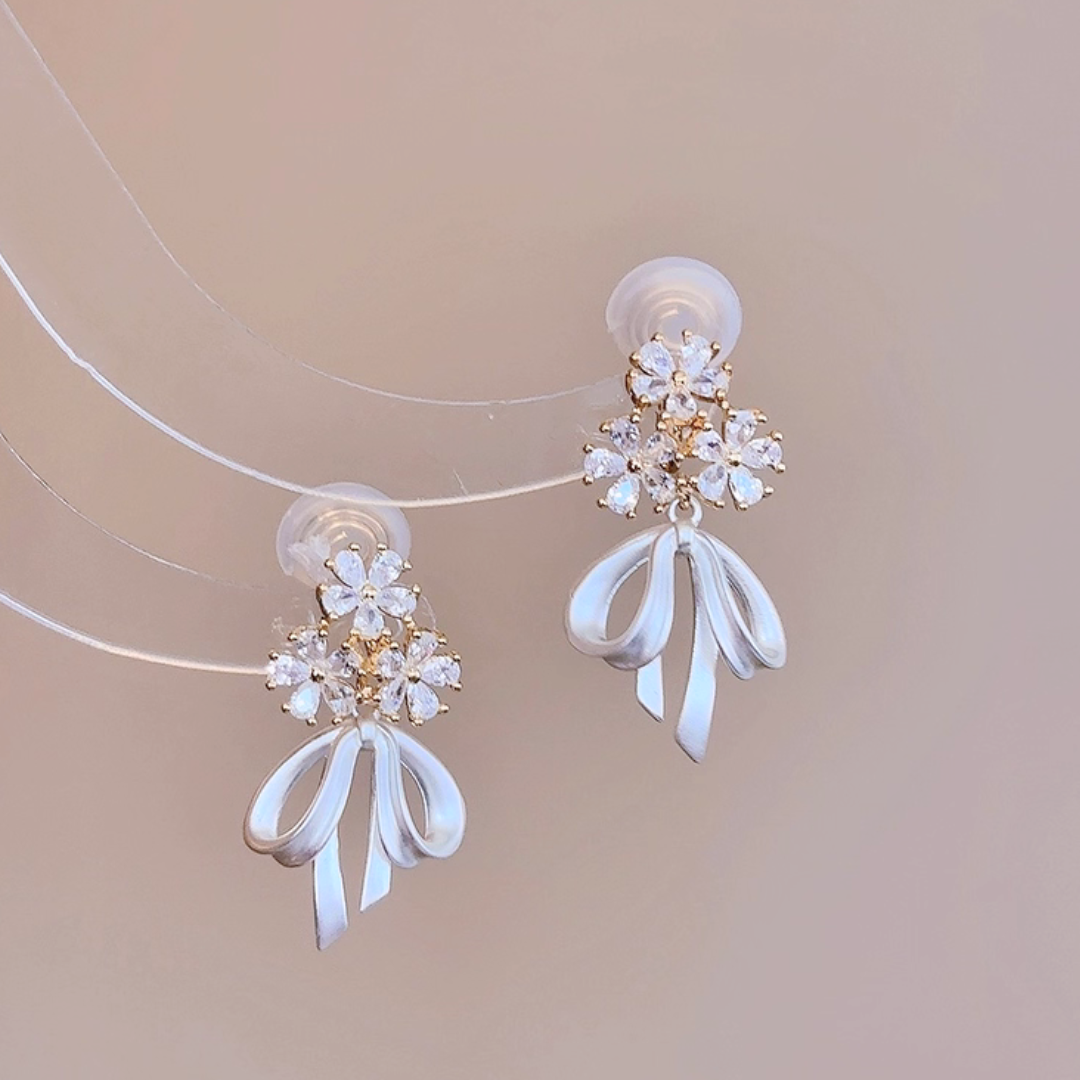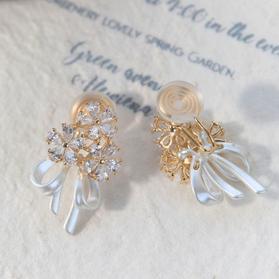 フラワーブーケ&リボンイヤリング【ノンホール(フラットタイプ)】