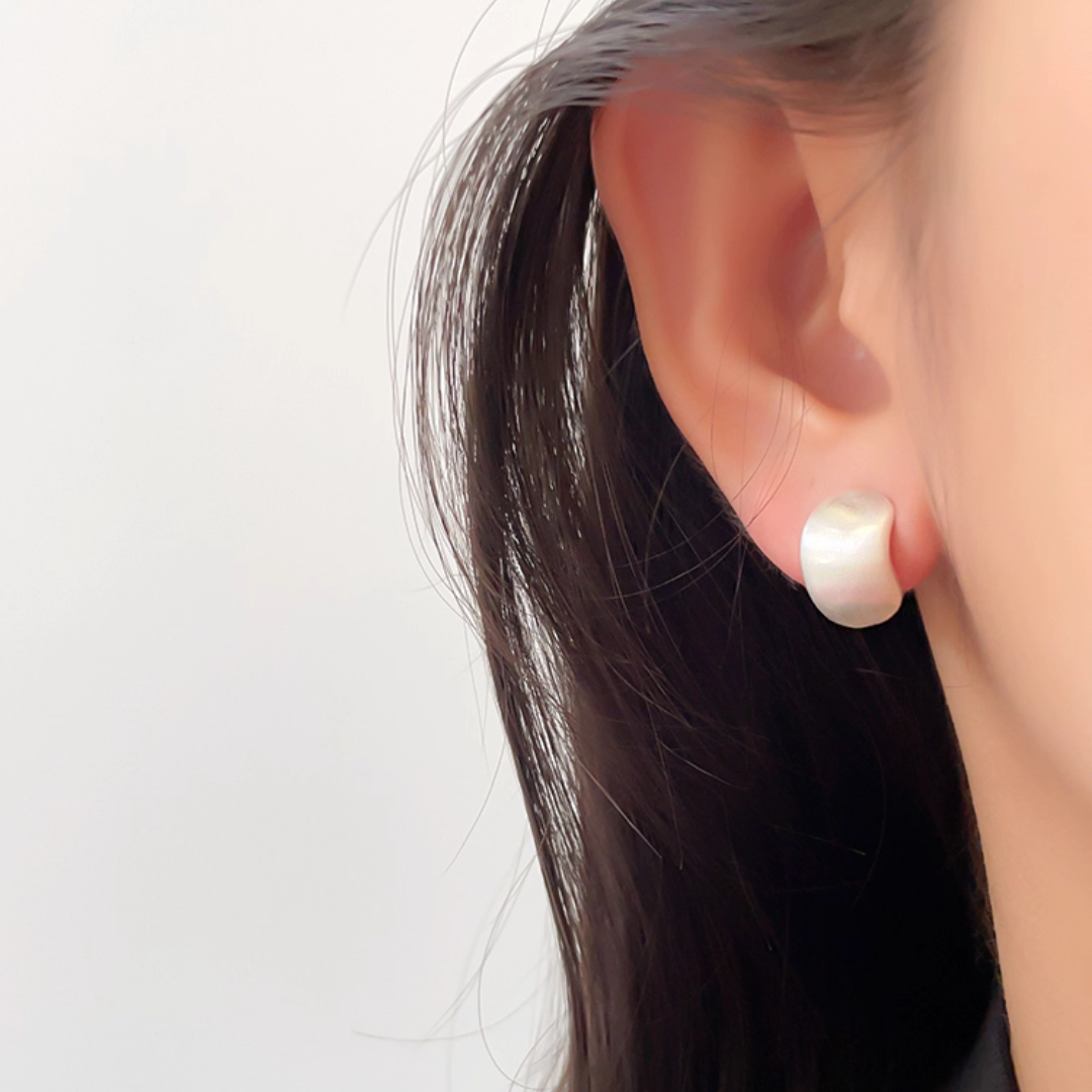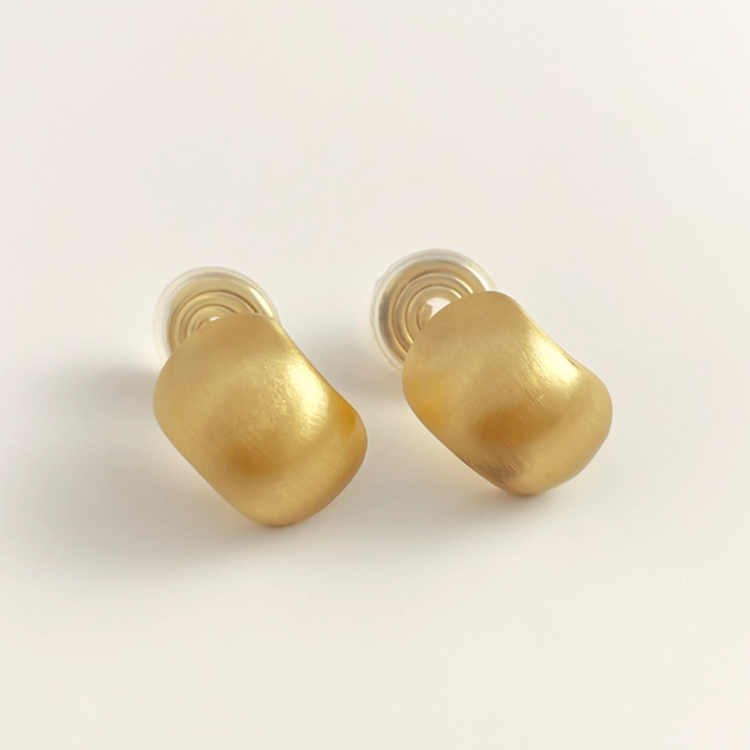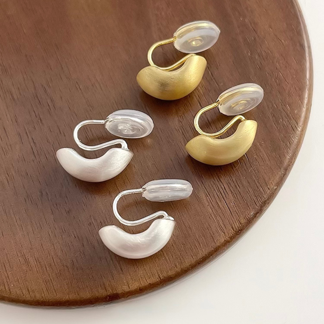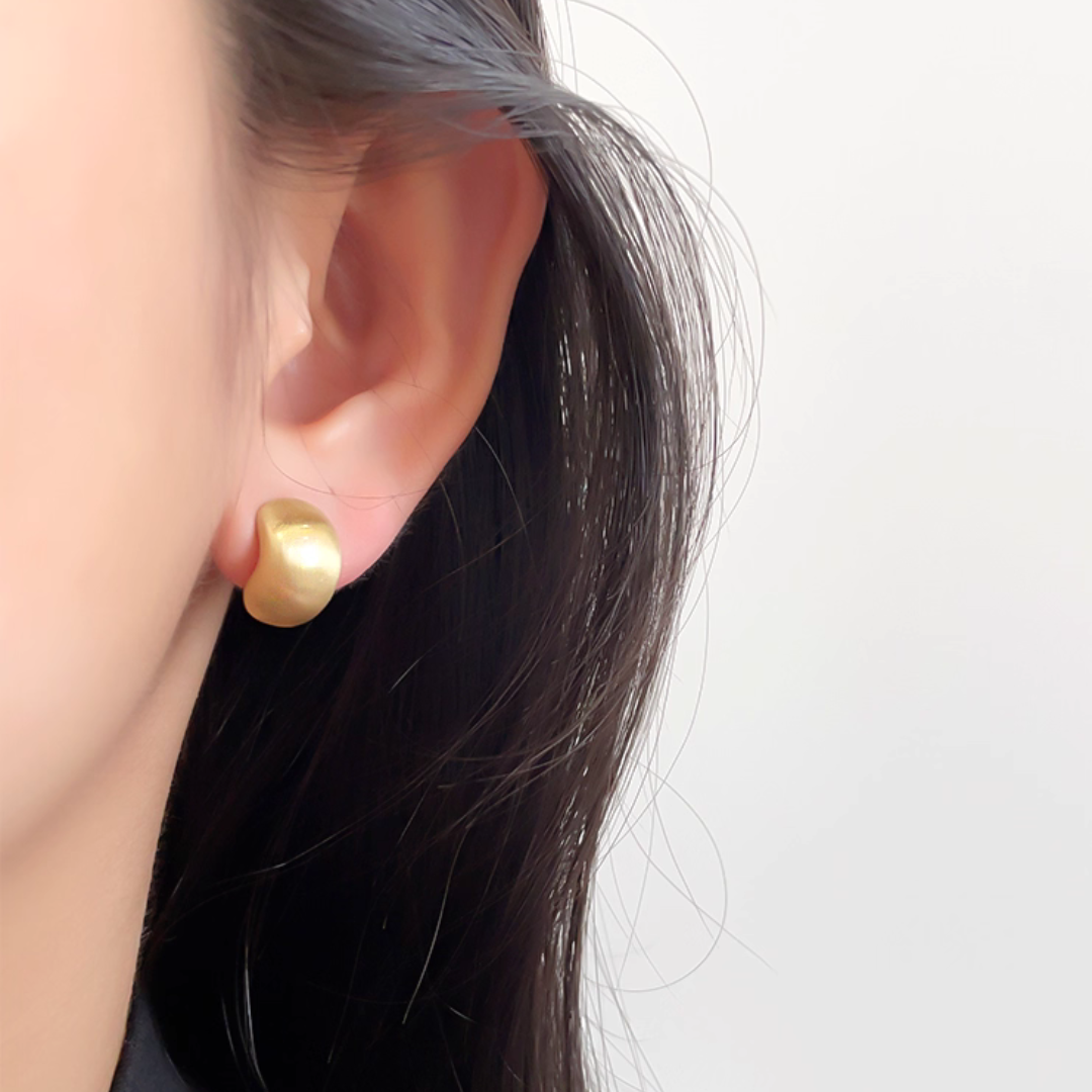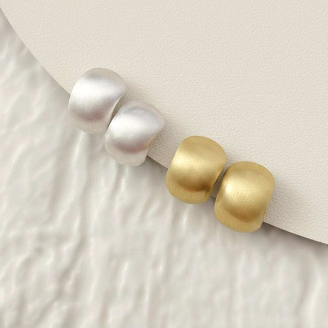 マットな質感が上品に輝く、金属ブラッシュ仕上げのカーブイヤリングです。