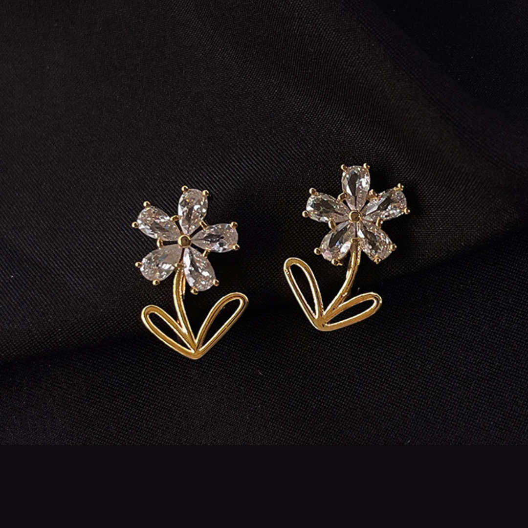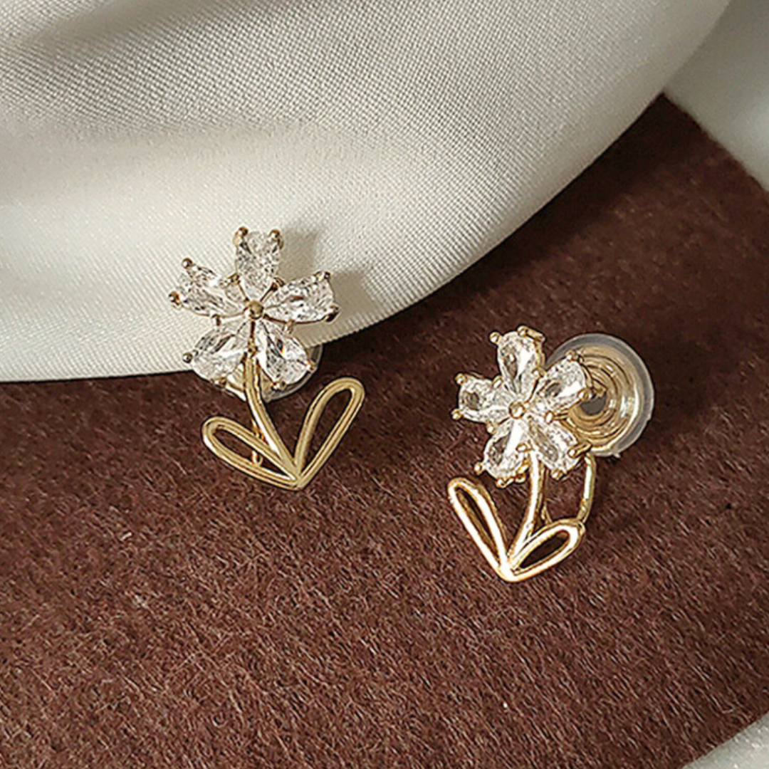 一輪の花モチーフ&ジルコンイヤリング【ノンホール(スプリングタイプ)】