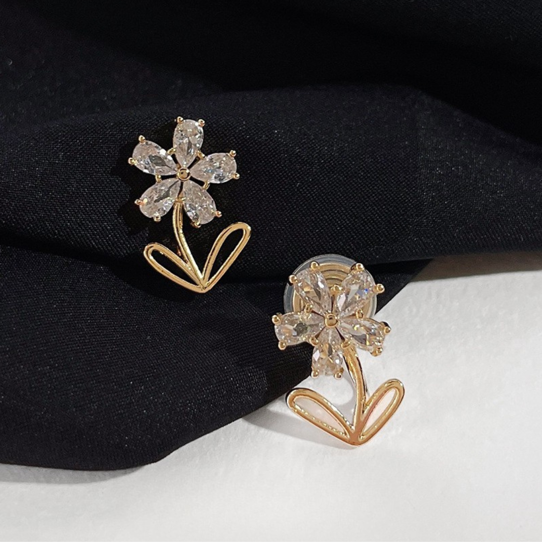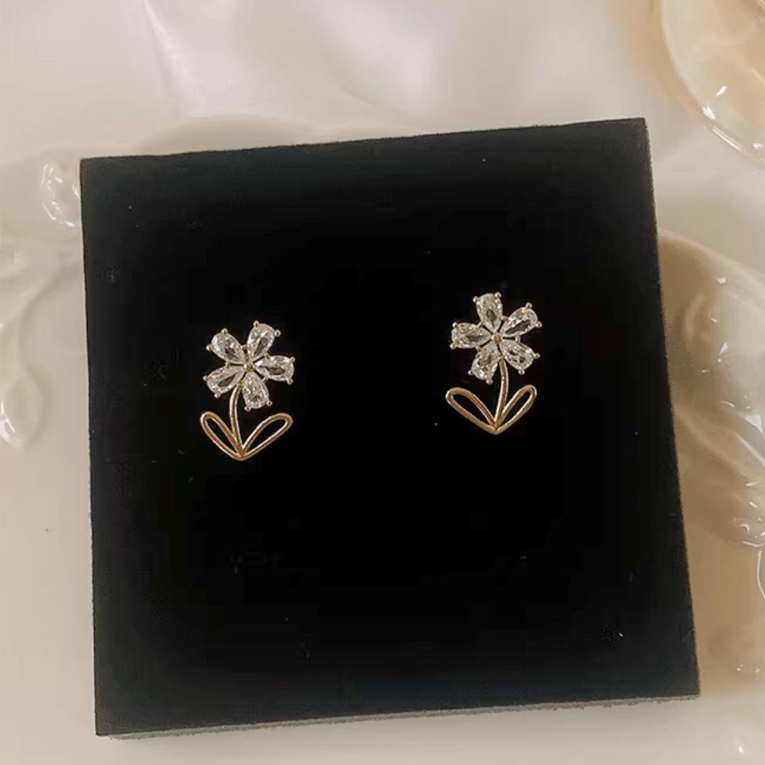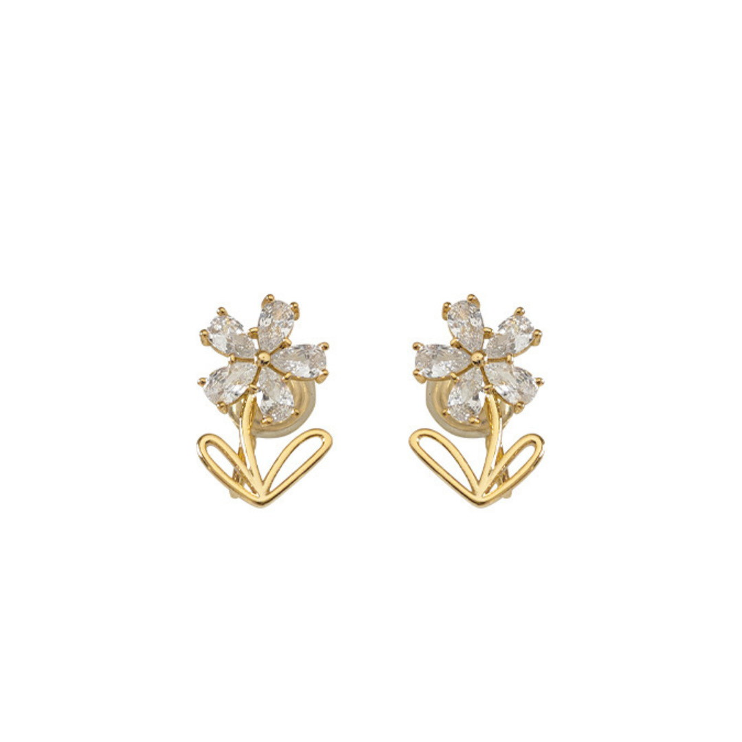 一輪の花モチーフ&ジルコンイヤリング【ノンホール(スプリングタイプ)】