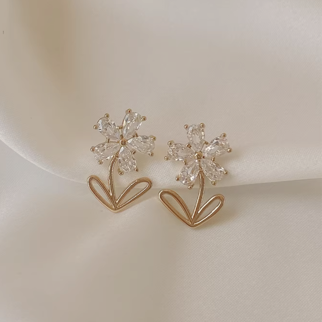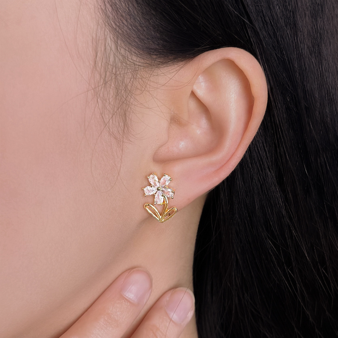 マーキスカットのジルコンが花びらのように集まり、可憐な一輪の花をかたどるイヤリング。
