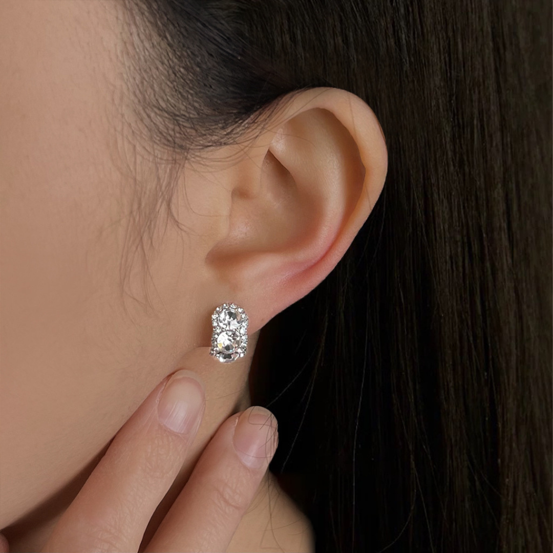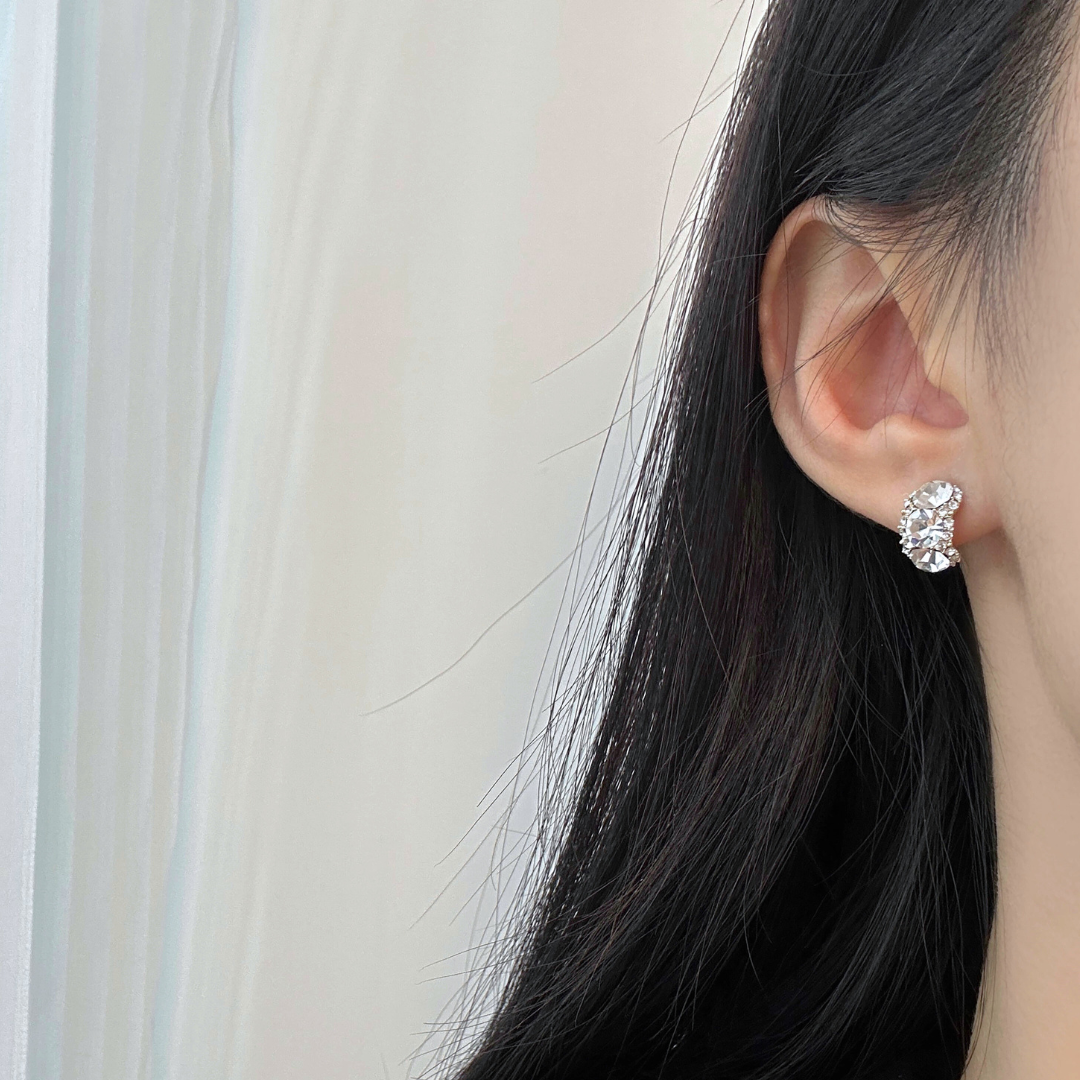 中央のビジューを取り巻くように、サイドにはきらめくパヴェをセッティング。どこから見ても眩いほどの、圧倒的な輝きを放ちます。 ぷっくりと厚みのあるデザインが、耳元を立体的に飾り、顔まわりをぱっと明るく華やかに演出! 結婚式やお呼ばれなど、ドレスアップした日の主役としてはもちろん、シンプルなニットに合わせて普段のスタイルを格上げするのも素敵です。