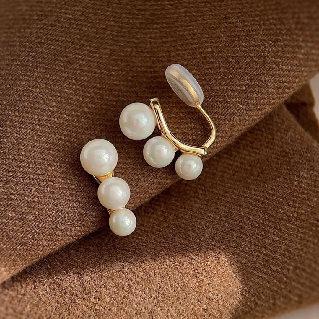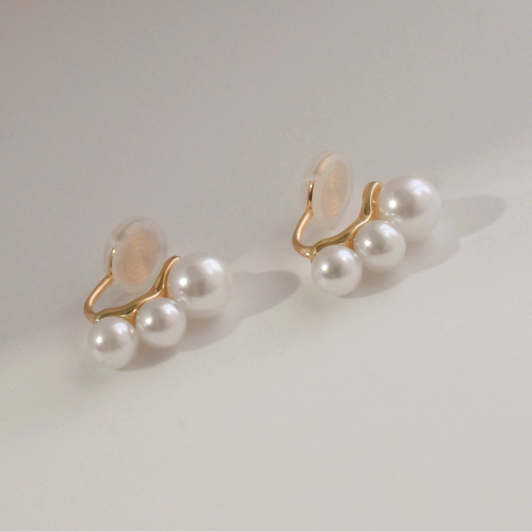 【予約販売|10/30(木)〜発送】3連パール ビジューイヤリング【ノンホール(フラットタイプ)】