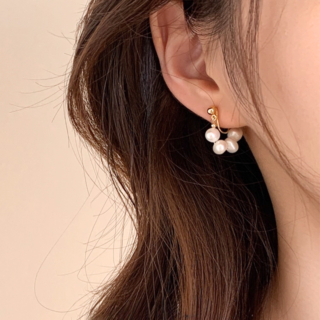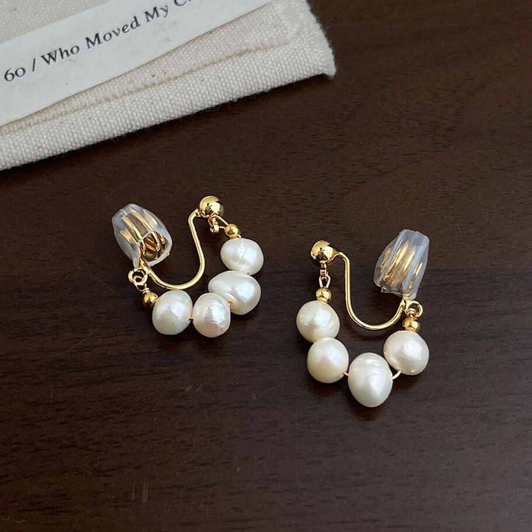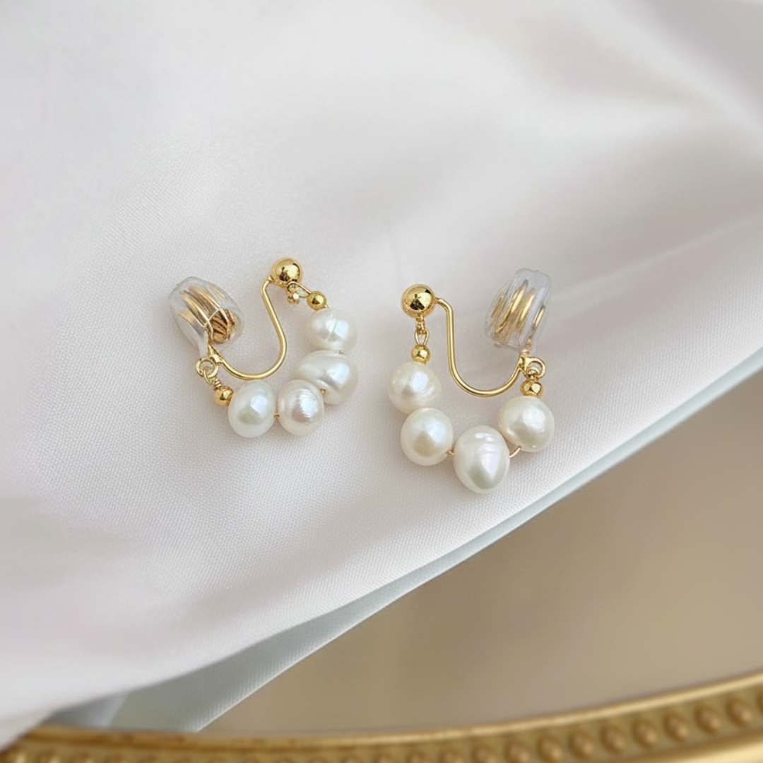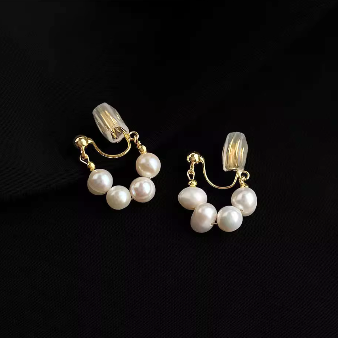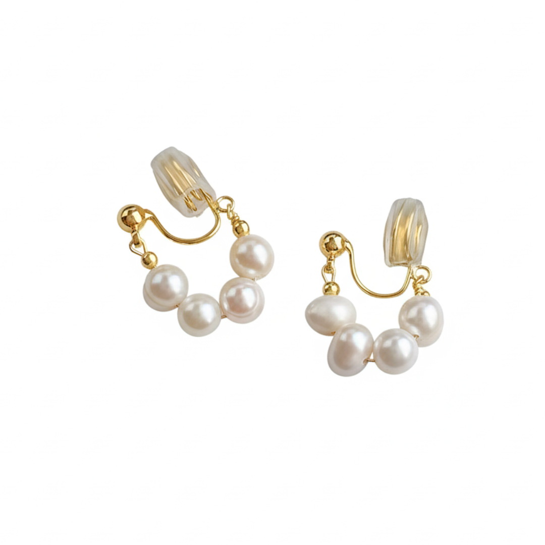 4連淡水パールフープイヤリング【ノンホール(スプリングタイプ)】