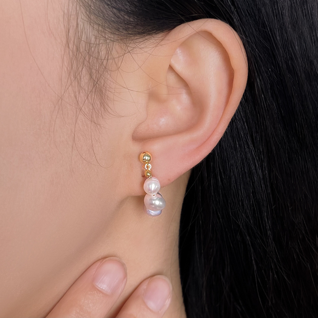 天然の淡水パールを4粒連ねた上品なイヤリング。