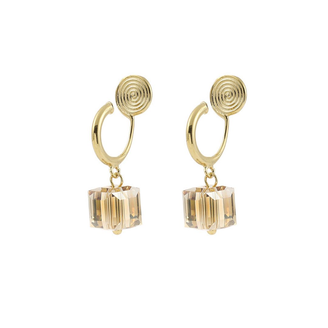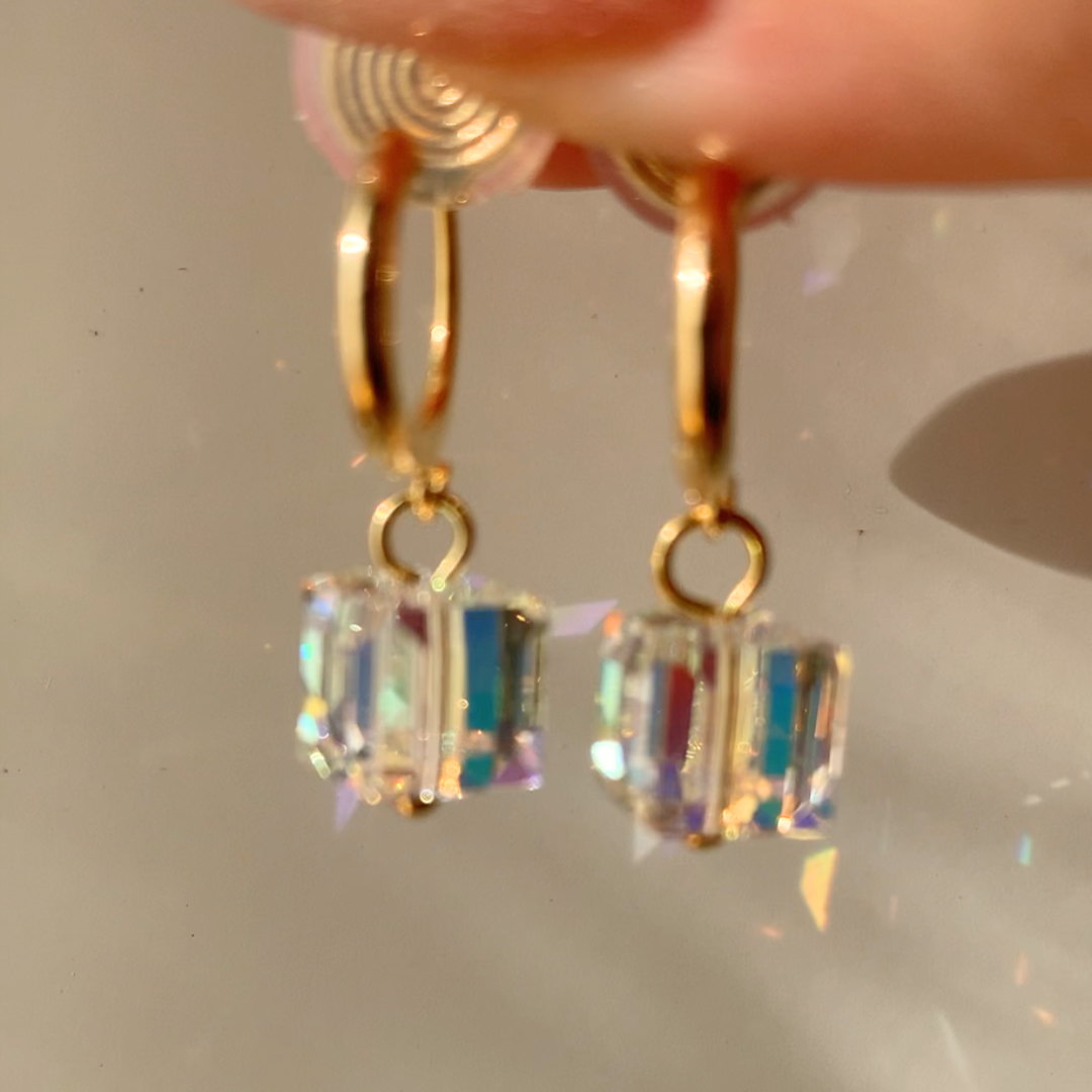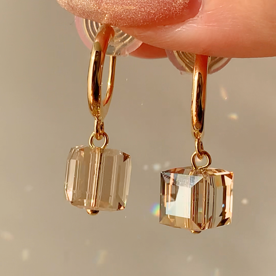 オーストリア製クリスタルを使用した、上品な輝きが魅力のキューブモチーフイヤリング。