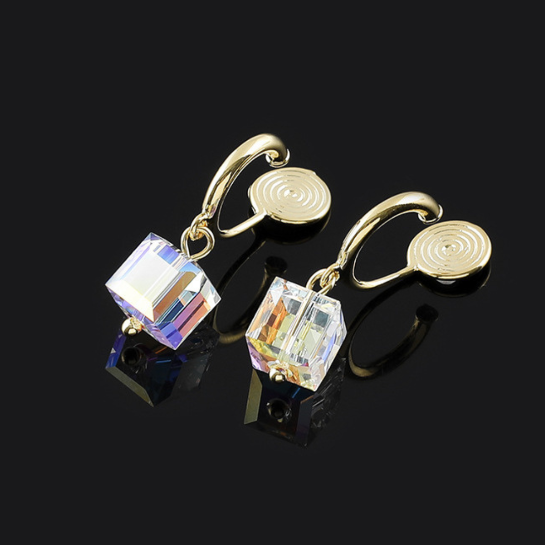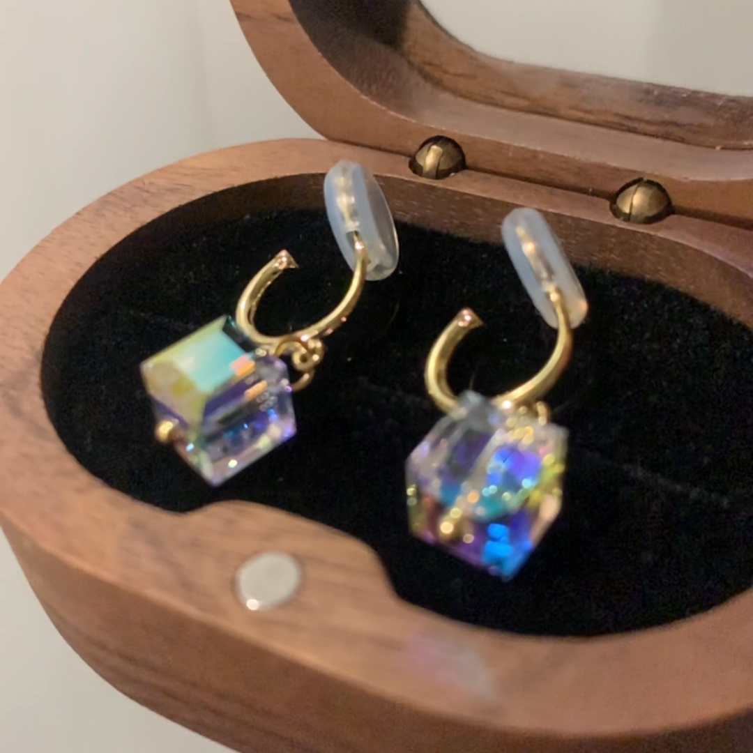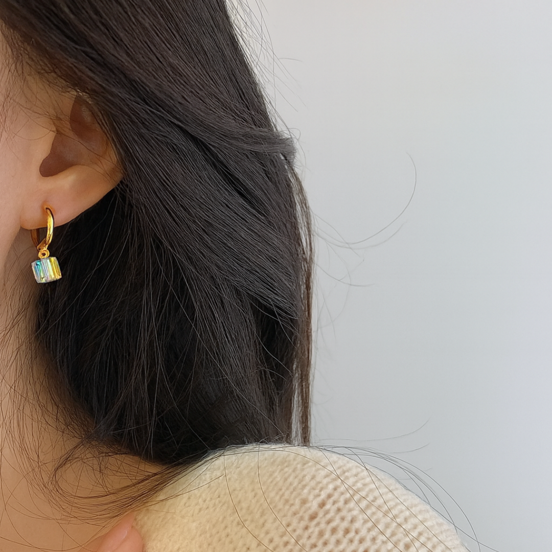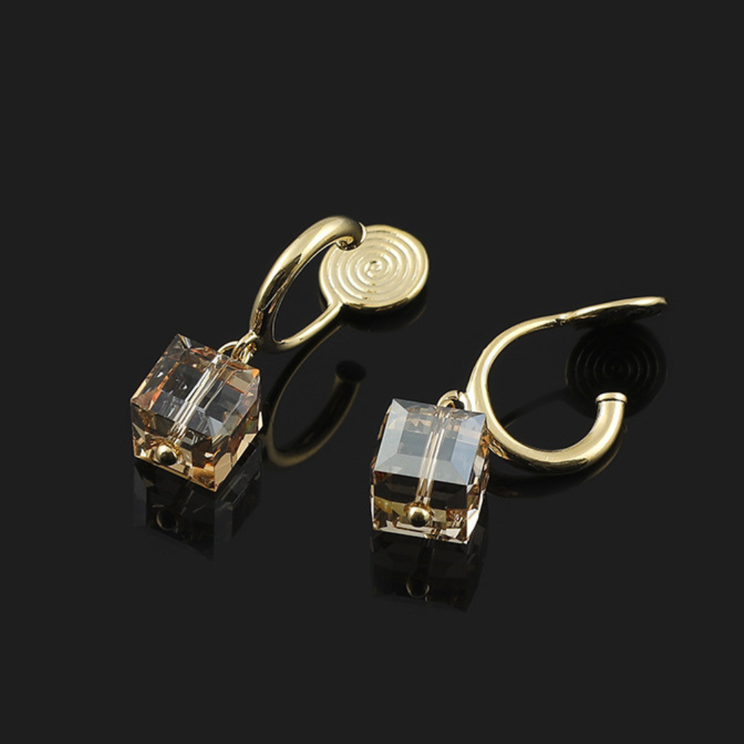 オーストリア製クリスタルを使用した、上品な輝きが魅力のキューブモチーフイヤリング。