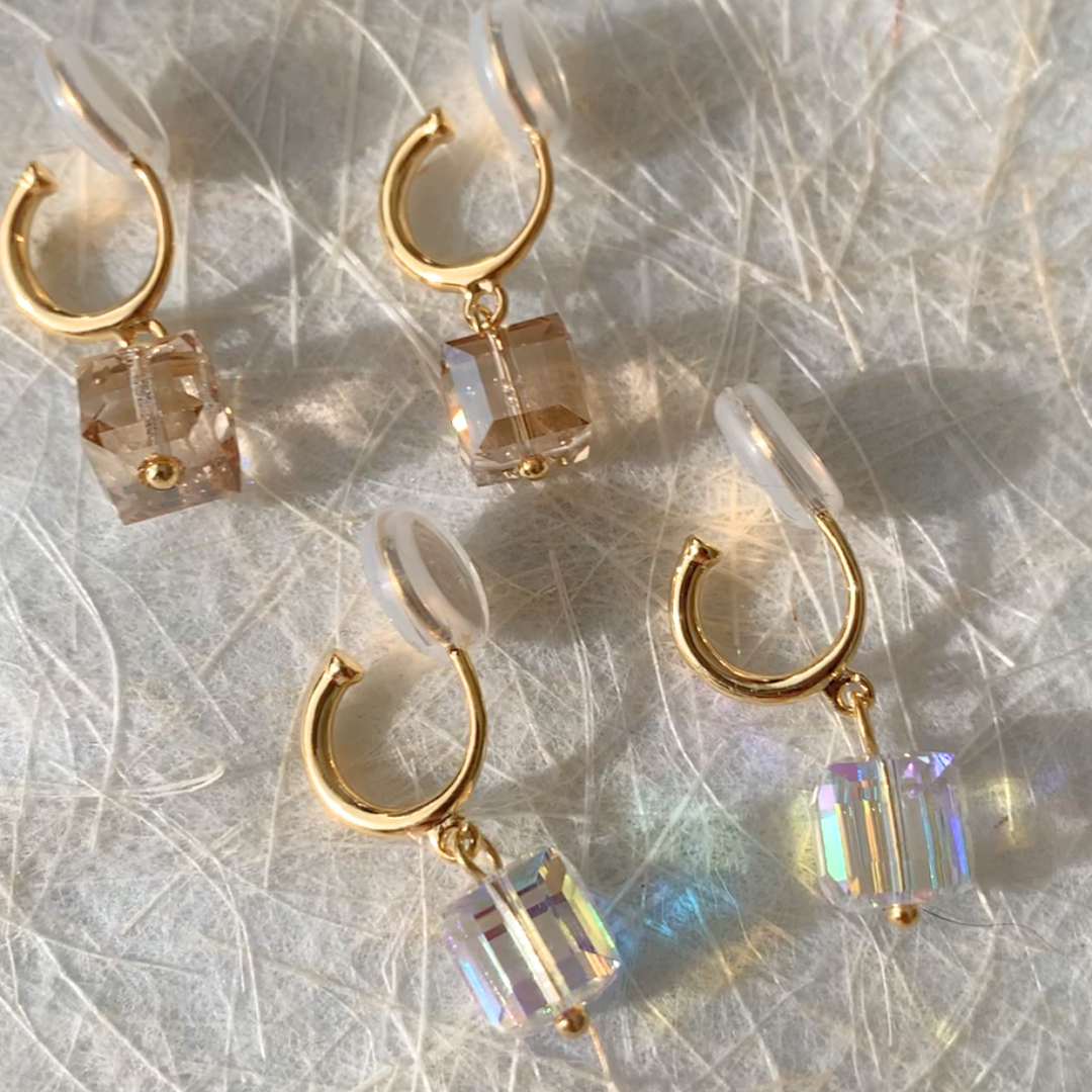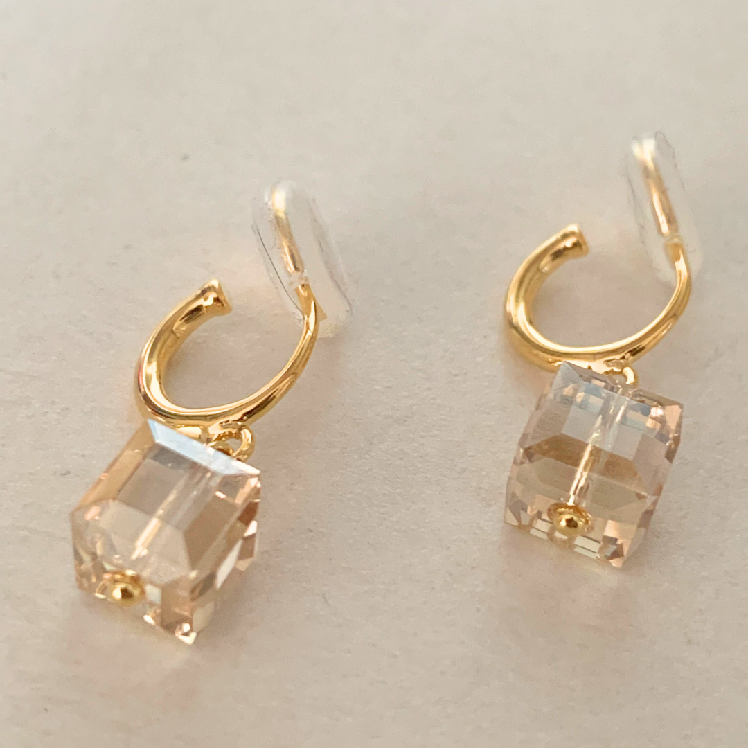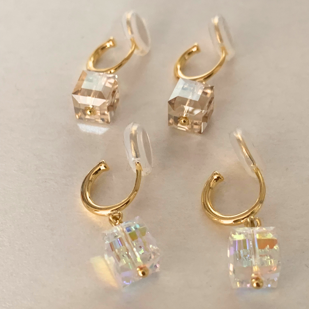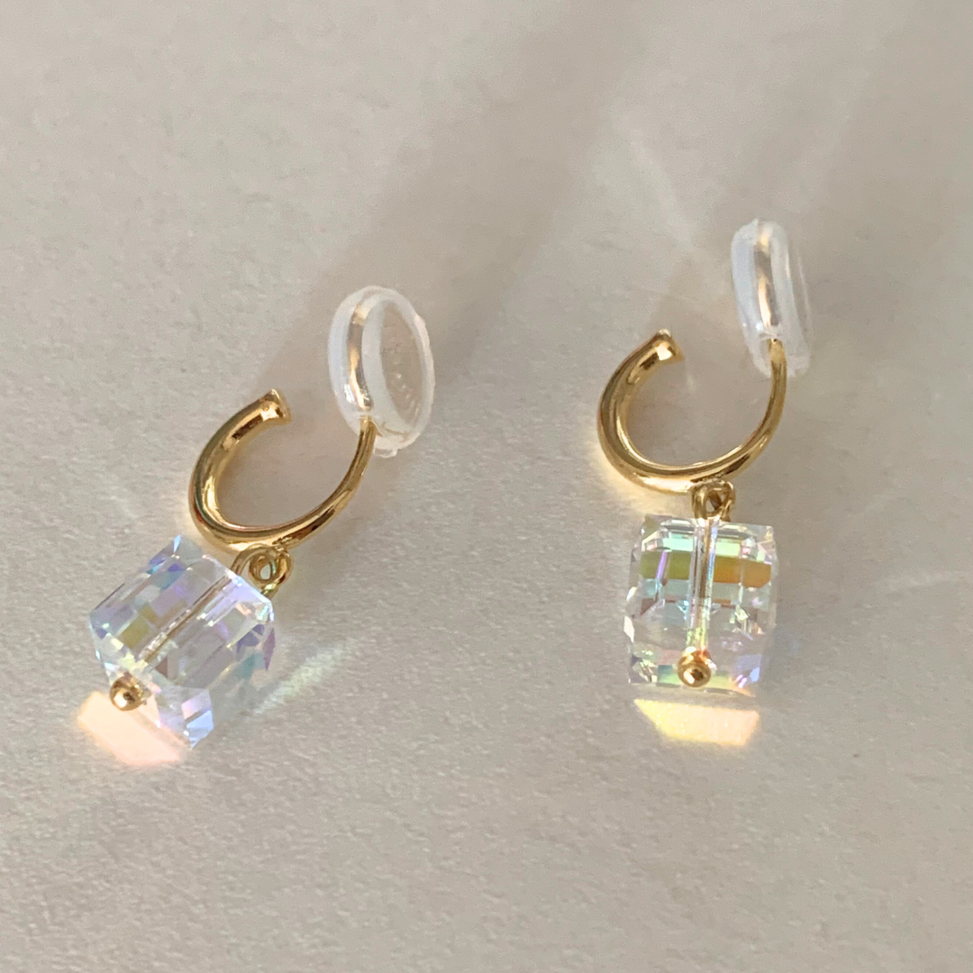 【新作|12/3(月)〜】クリスタルキューブイヤリング【ノンホール(フラットタイプ)】
