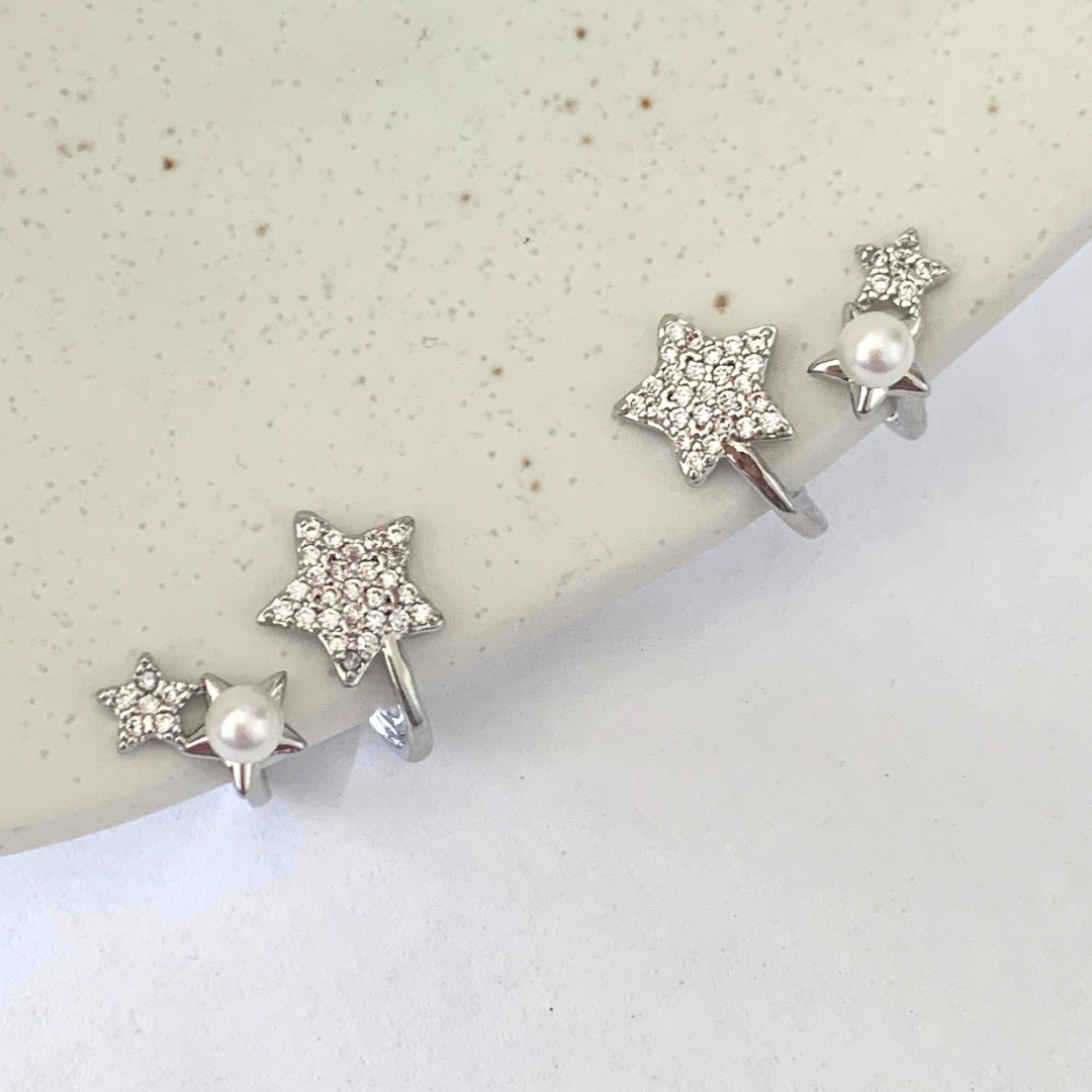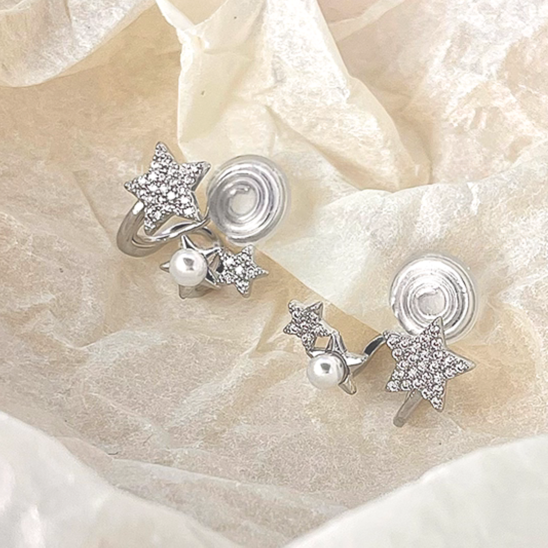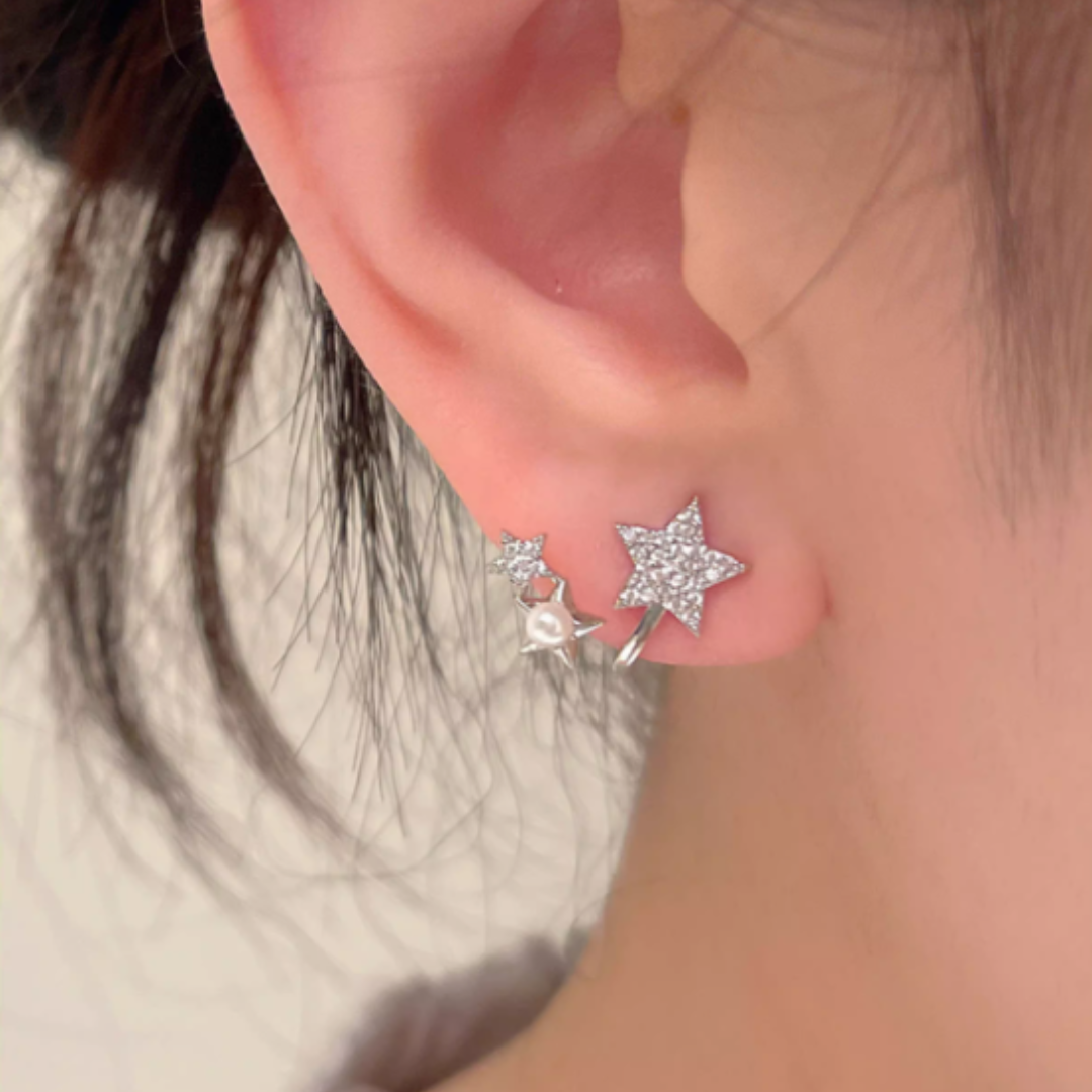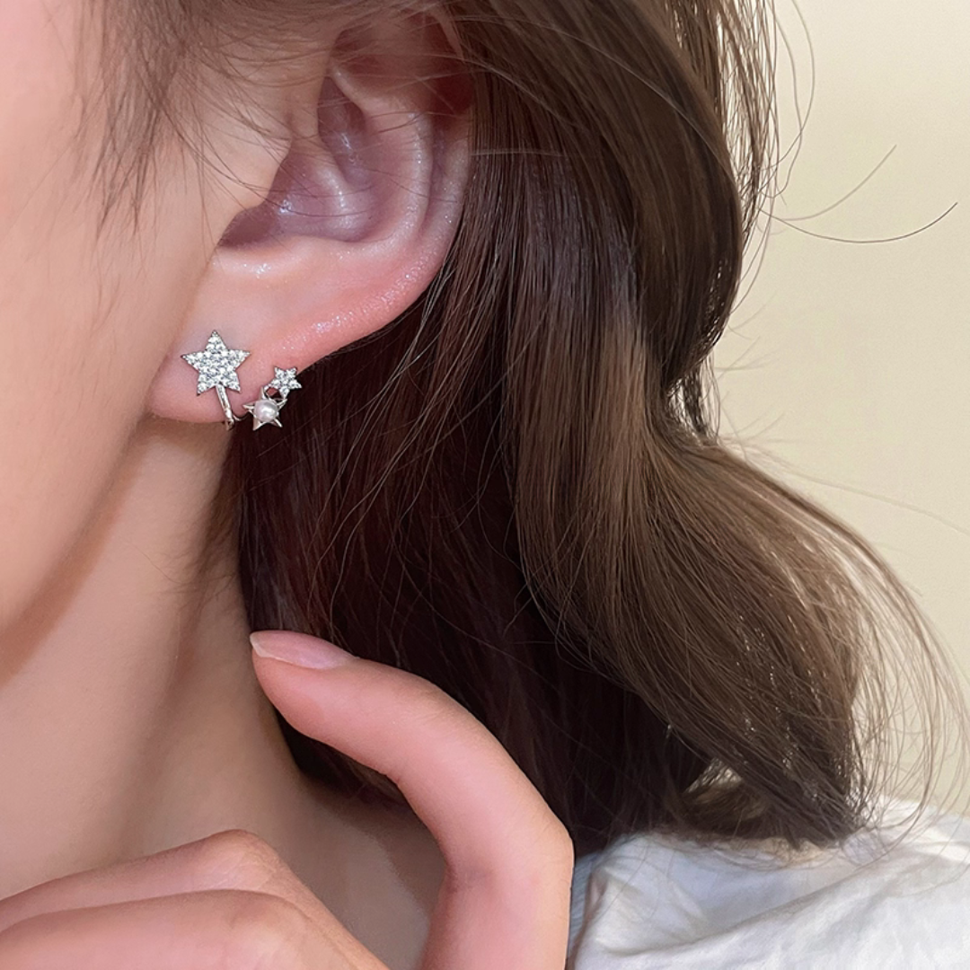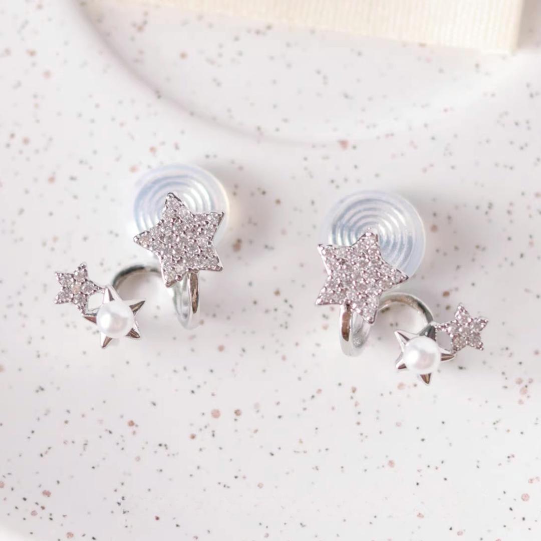 大小の異なる3つのスターを連ねた、可憐で遊び心のあるデザインイヤリング。