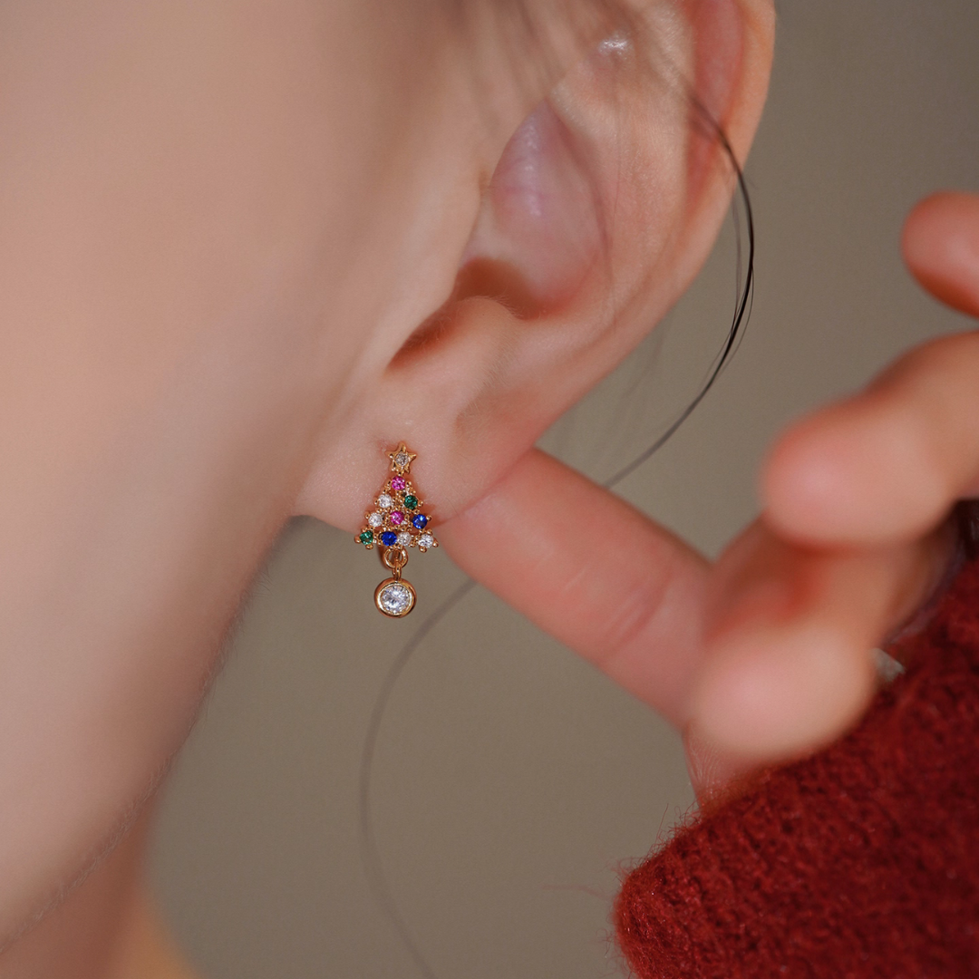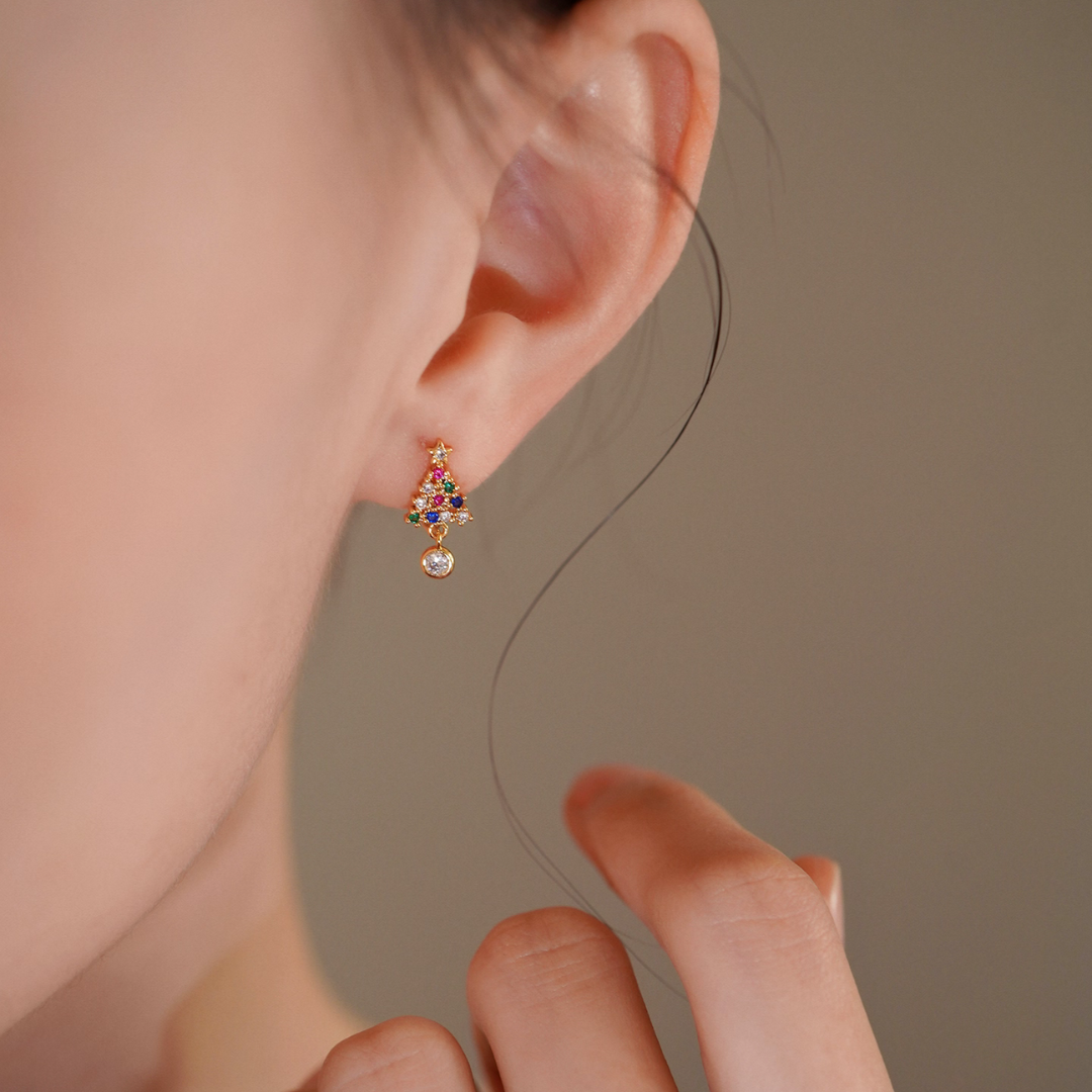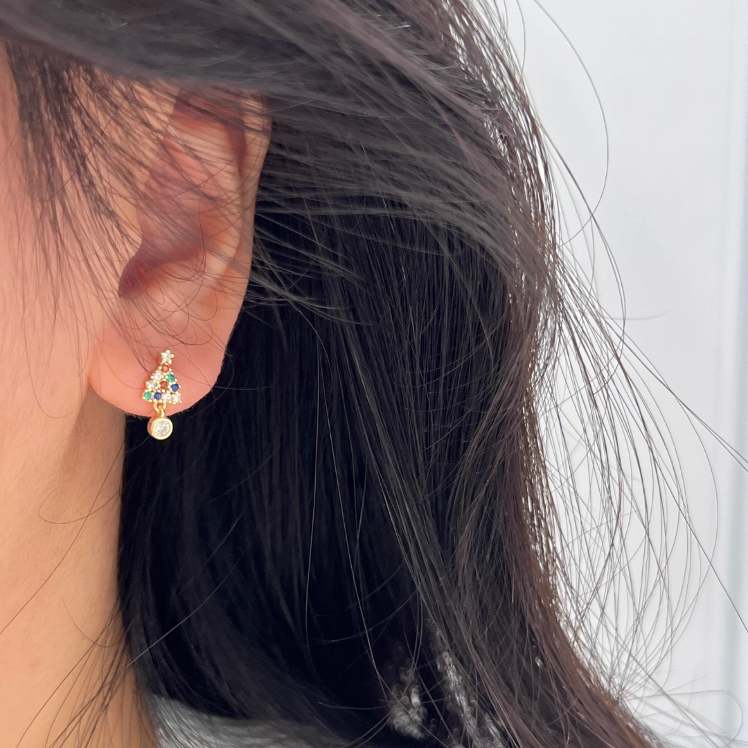 ミニサイズのクリスマスツリーモチーフイヤリング。