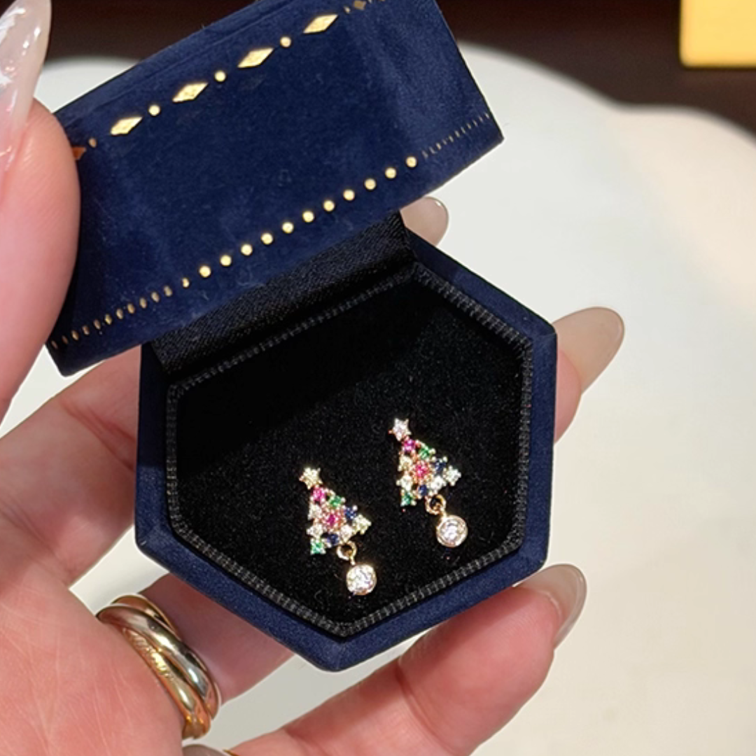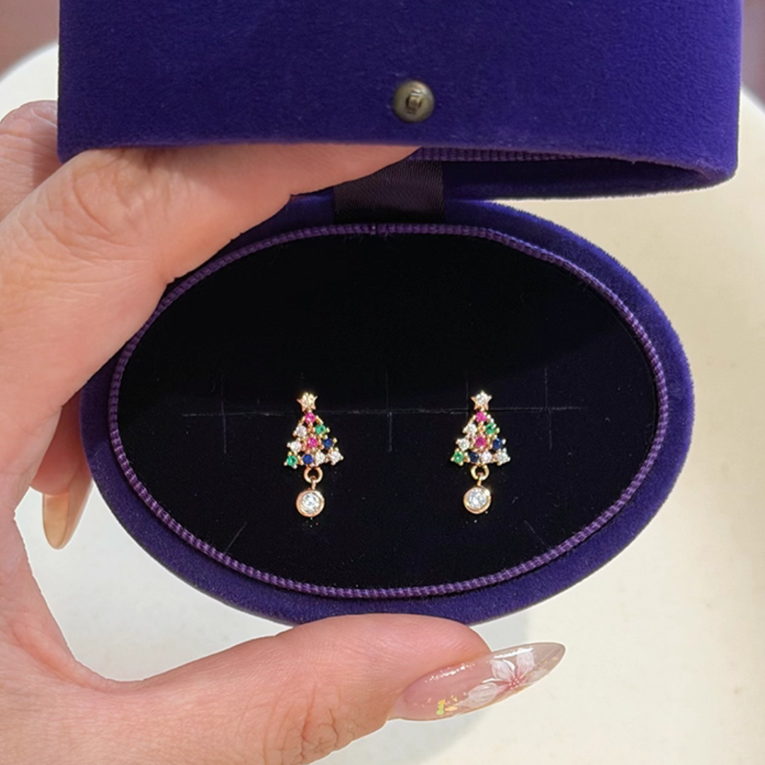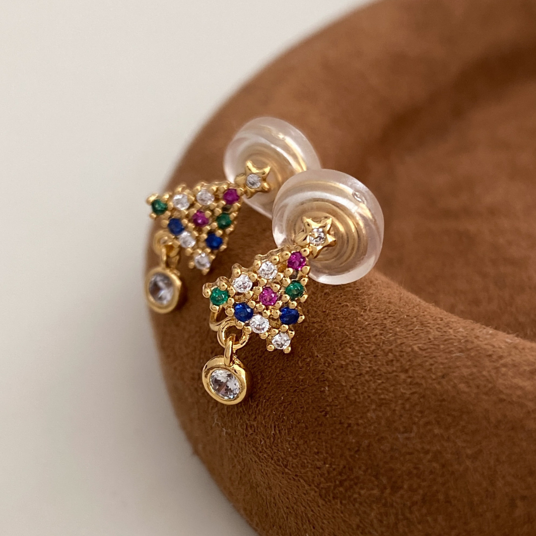 ミニサイズのクリスマスツリーモチーフイヤリング。