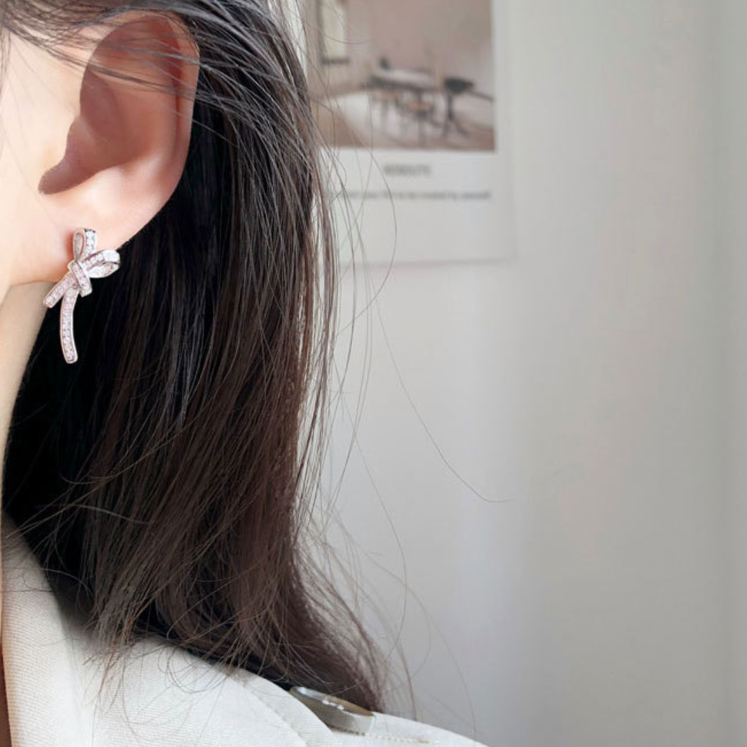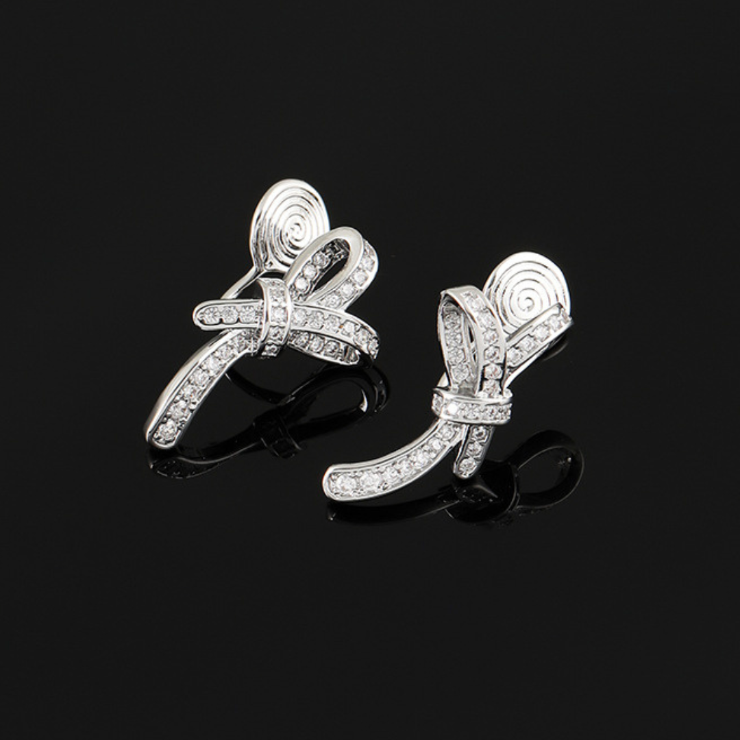 リボンの曲線に沿って配置されたストーンが光を美しく反射し、