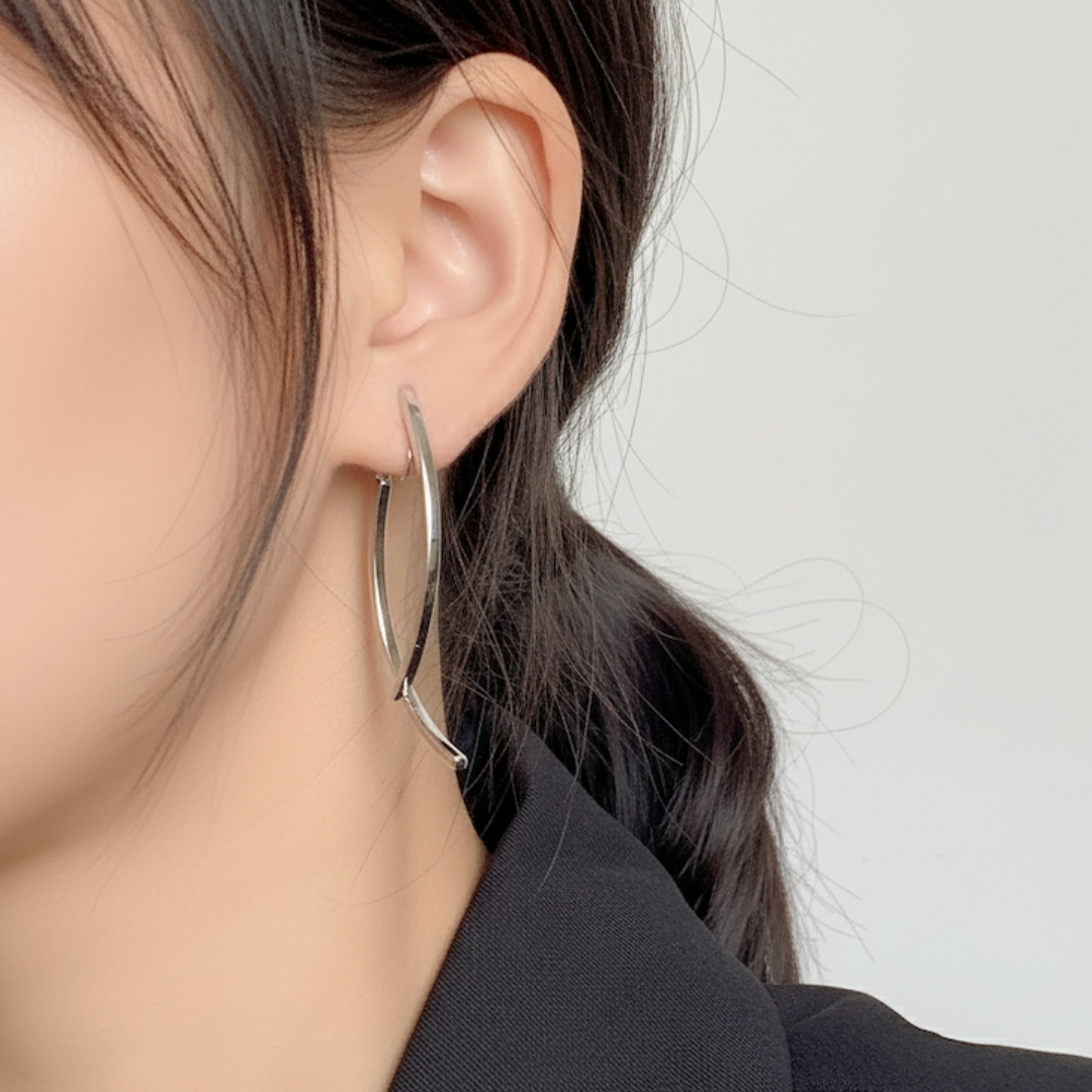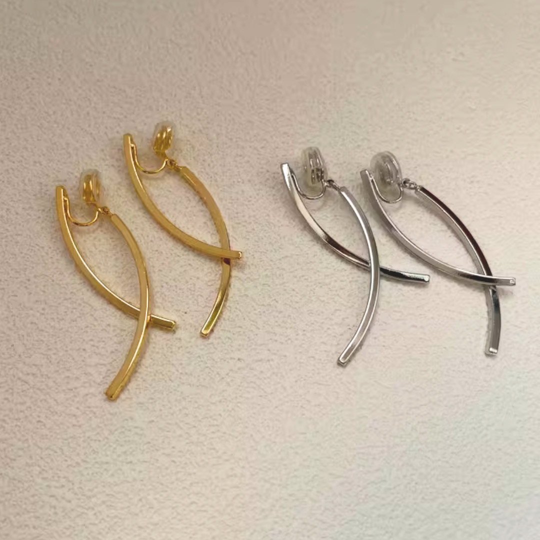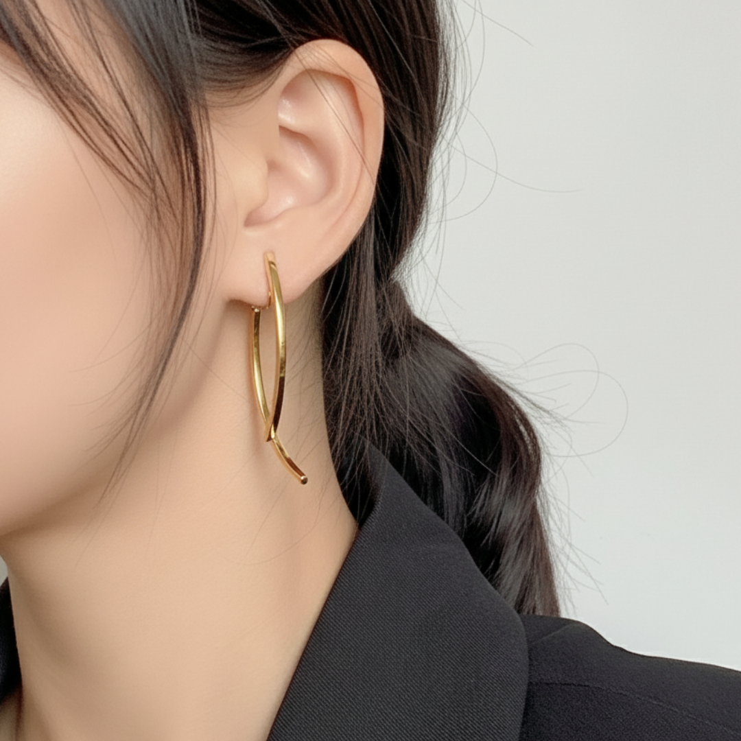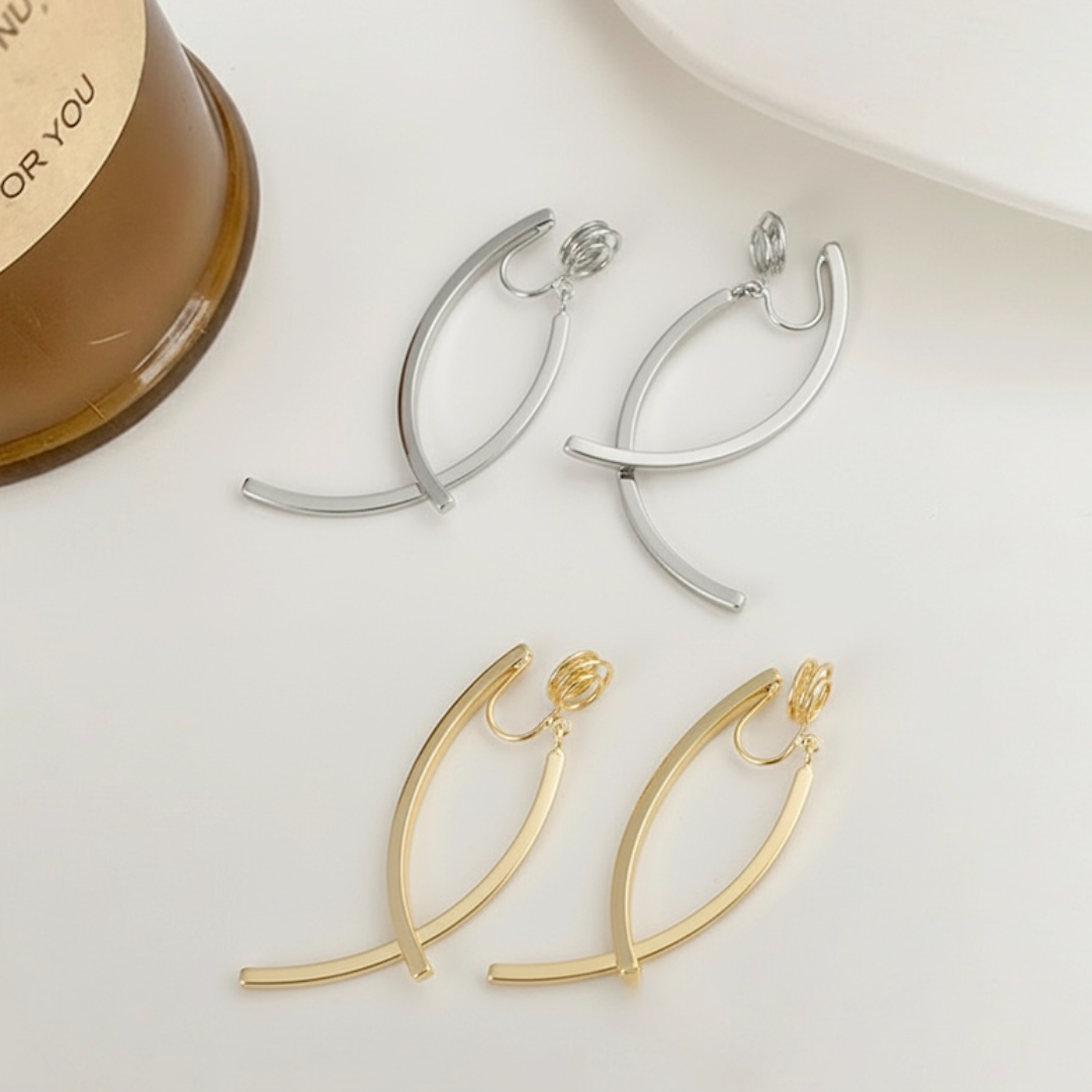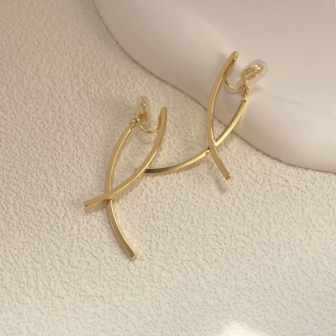 滑らかなラインが美しく交差する、流線型イヤリング。